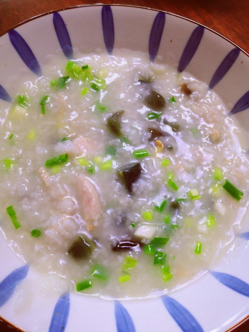 吃了一半了才想起拍照。皮蛋我只放了蛋清,总觉得蛋黄煮粥里会很腥,还放了小葱,这样也很好吃。