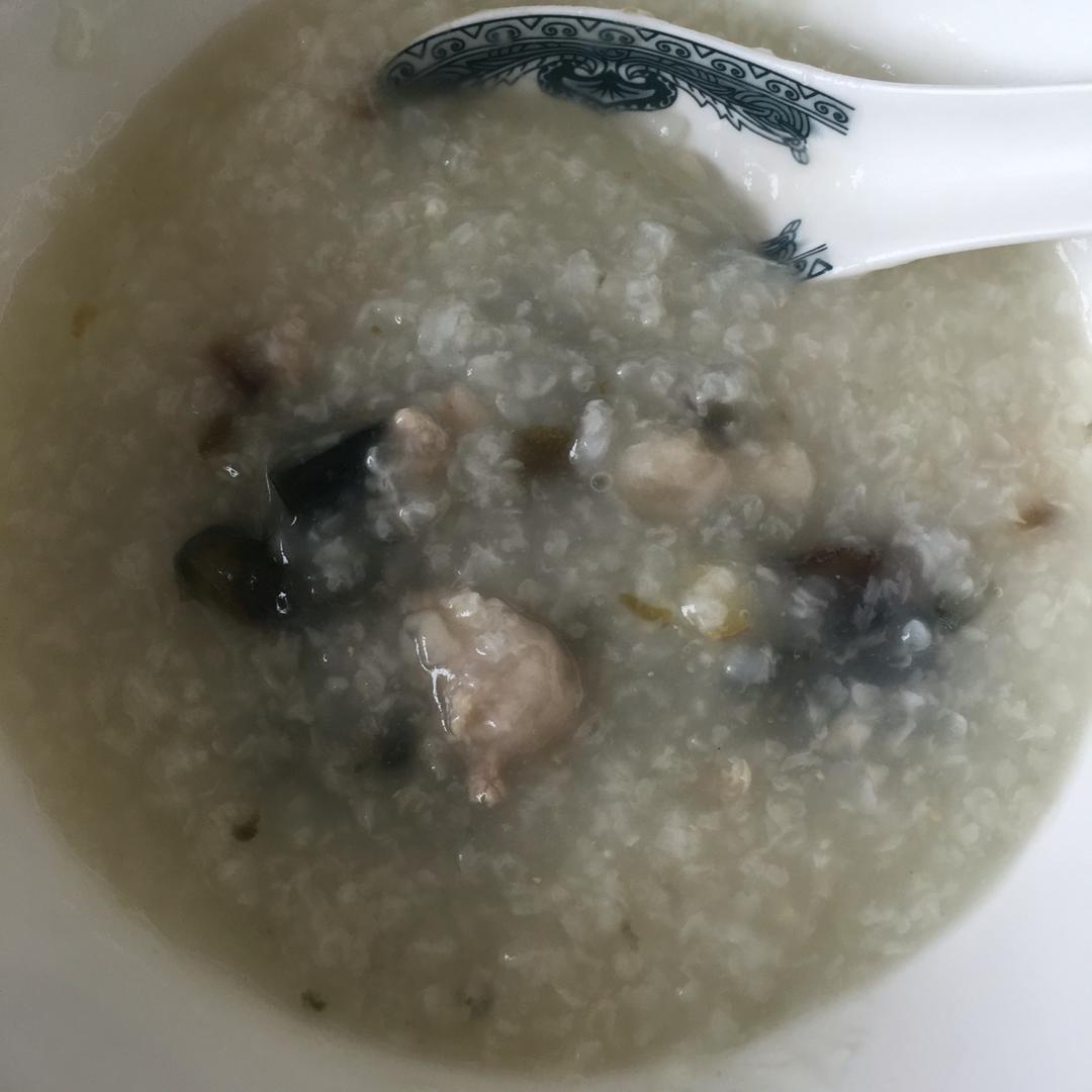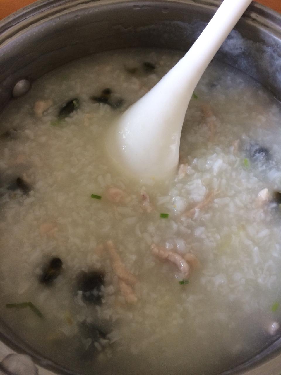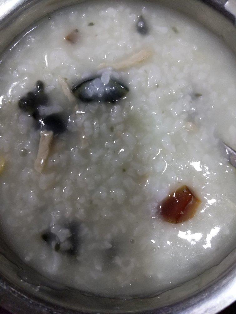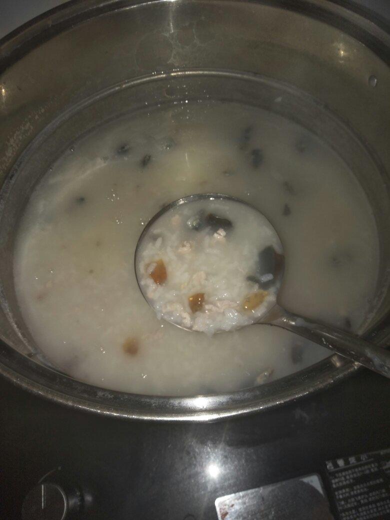 吃了一半了才想起拍照。皮蛋我只放了蛋清,总觉得蛋黄煮粥里会很腥,还放了小葱,这样也很好吃。