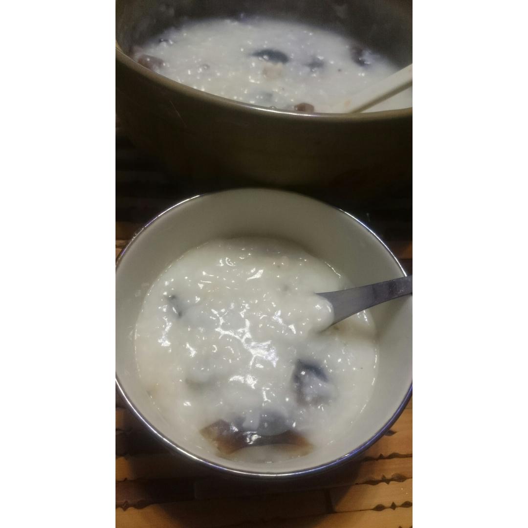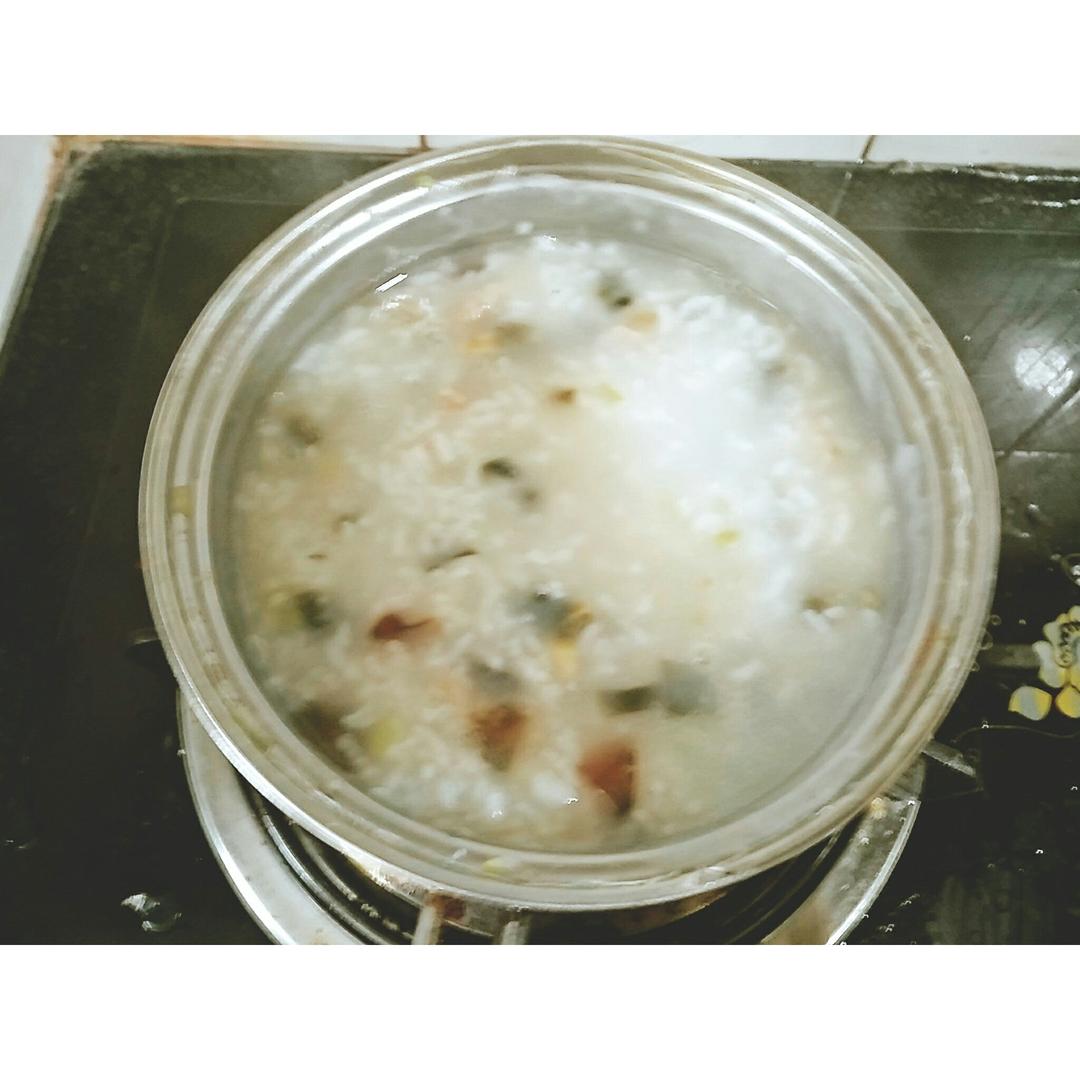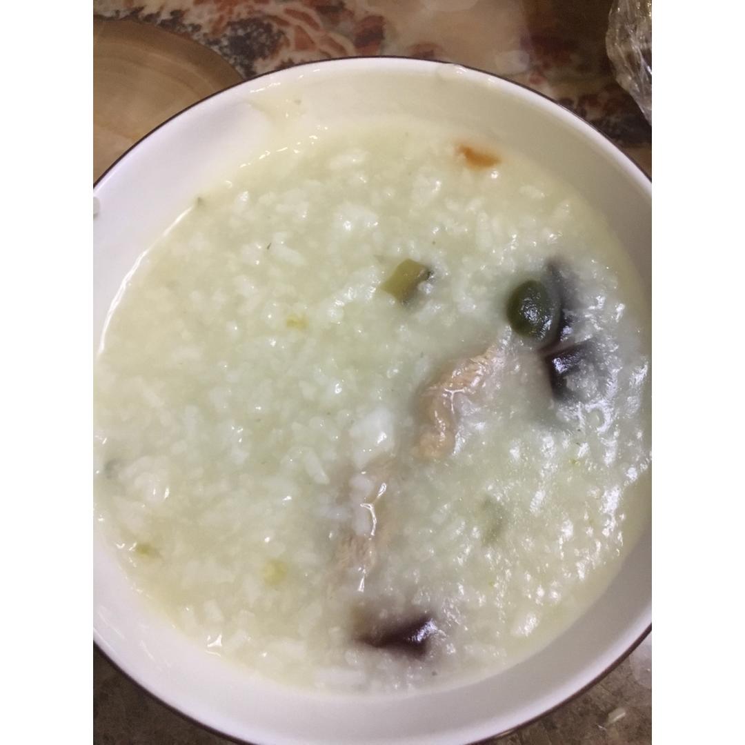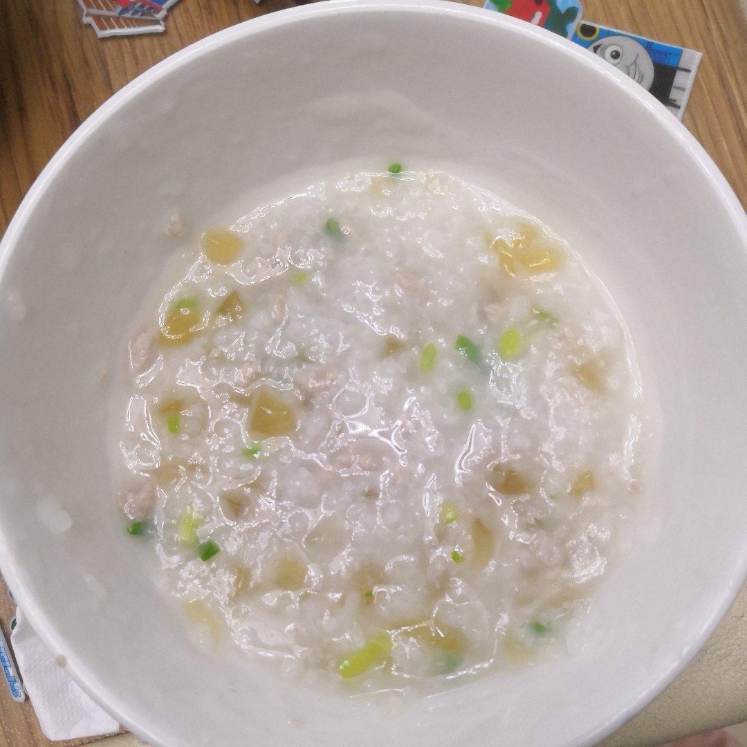 吃了一半了才想起拍照。皮蛋我只放了蛋清,总觉得蛋黄煮粥里会很腥,还放了小葱,这样也很好吃。