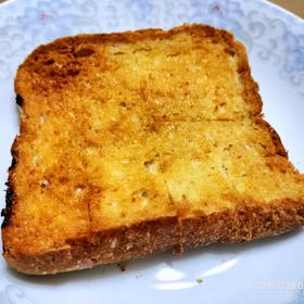 用的只是半块吐司,5g左右的黄油混合4g蜂蜜涂满表面是足够的啦,表面还撒了3g糖(用的是代糖,像是绵白糖的细腻程度,应该改成大颗粒一点的砂糖吃起来会更有感觉!)最后吃起来稍稍过甜,下次试试用黄油量的一半的蜂蜜😅这次其实黄油也涂多了,吃到最后油渗透下去湿软的部分会觉得腻,不过也跟我吐司切片的薄厚程度有关,如果切成厚片吐司就会有口感的过度,不会像我因为这次吐司薄才感觉除了脆顶和脆底中间就只有全被顶部黄油渗下被浸润的部分,讲道理这个吃法就该配厚切片才有灵魂!!总之,好吃!