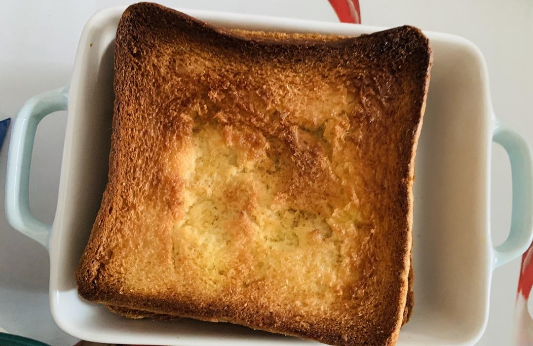 忽略它边边和底部有些烤焦了……我终于解锁了几年前疯狂上头的烤吐司!当时还一直好奇这种顶部脆脆甜甜而靠近顶部的下面一点点又是湿润柔软又奶香十足的口味口感是怎么做出来的呢(zqsg点名一鸣的面包诱惑!)