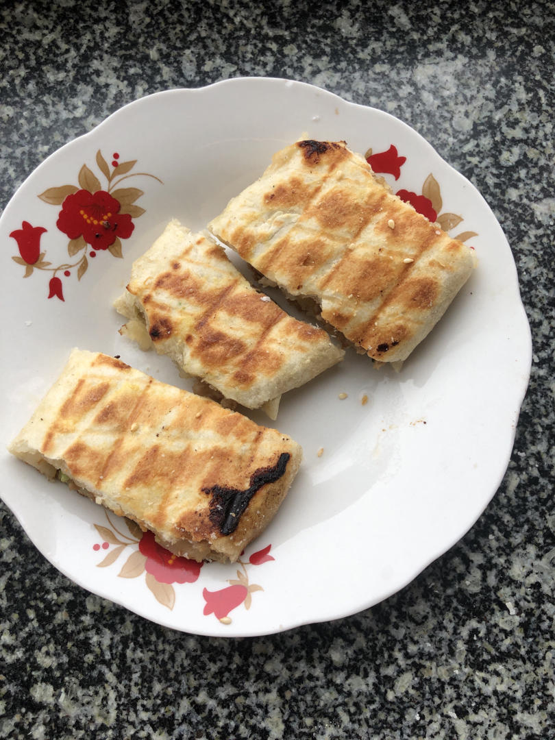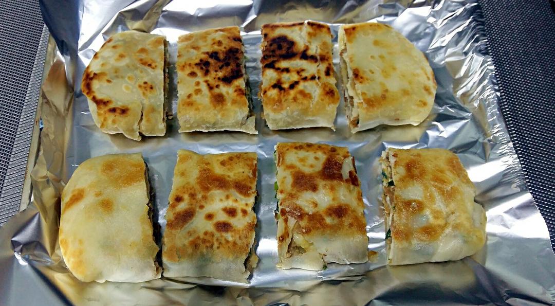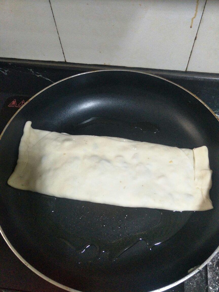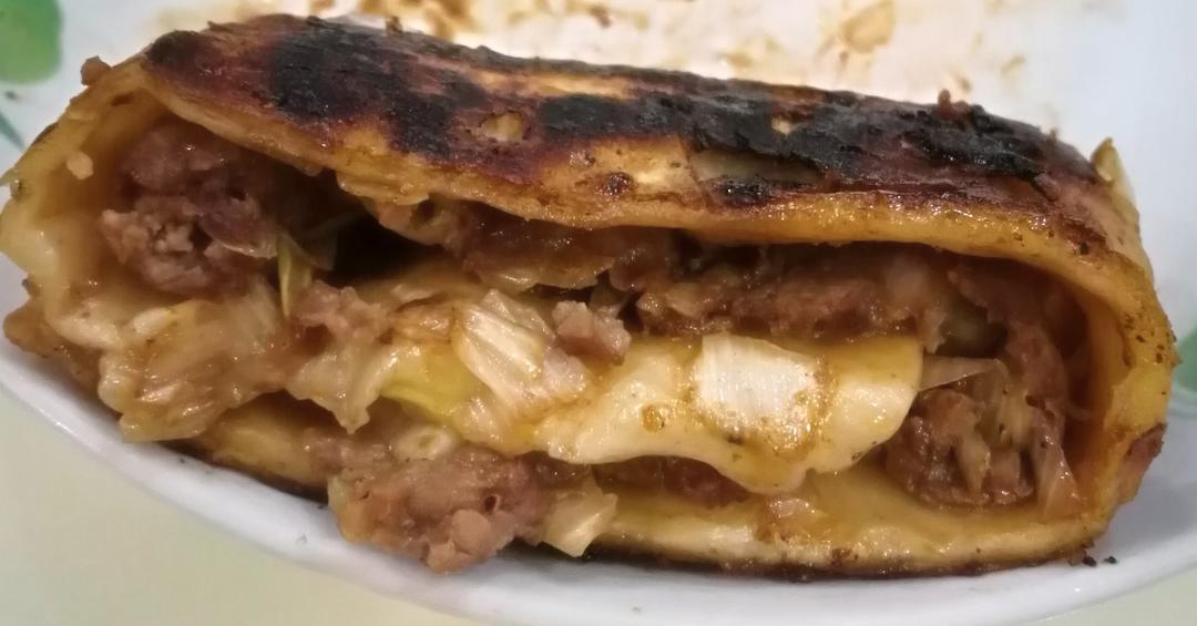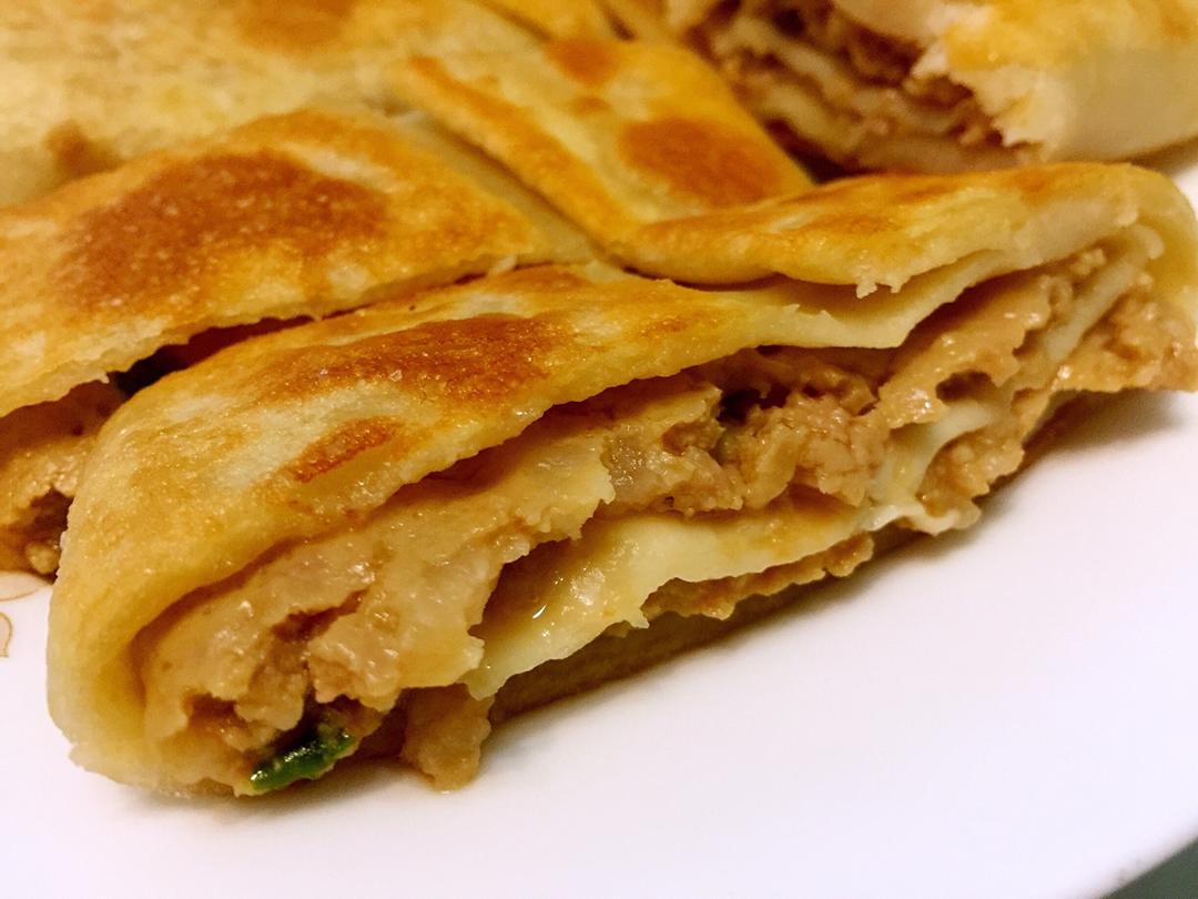 放的熟肉,里面的油漏出来了,把饼煎的金黄金黄的,好好吃