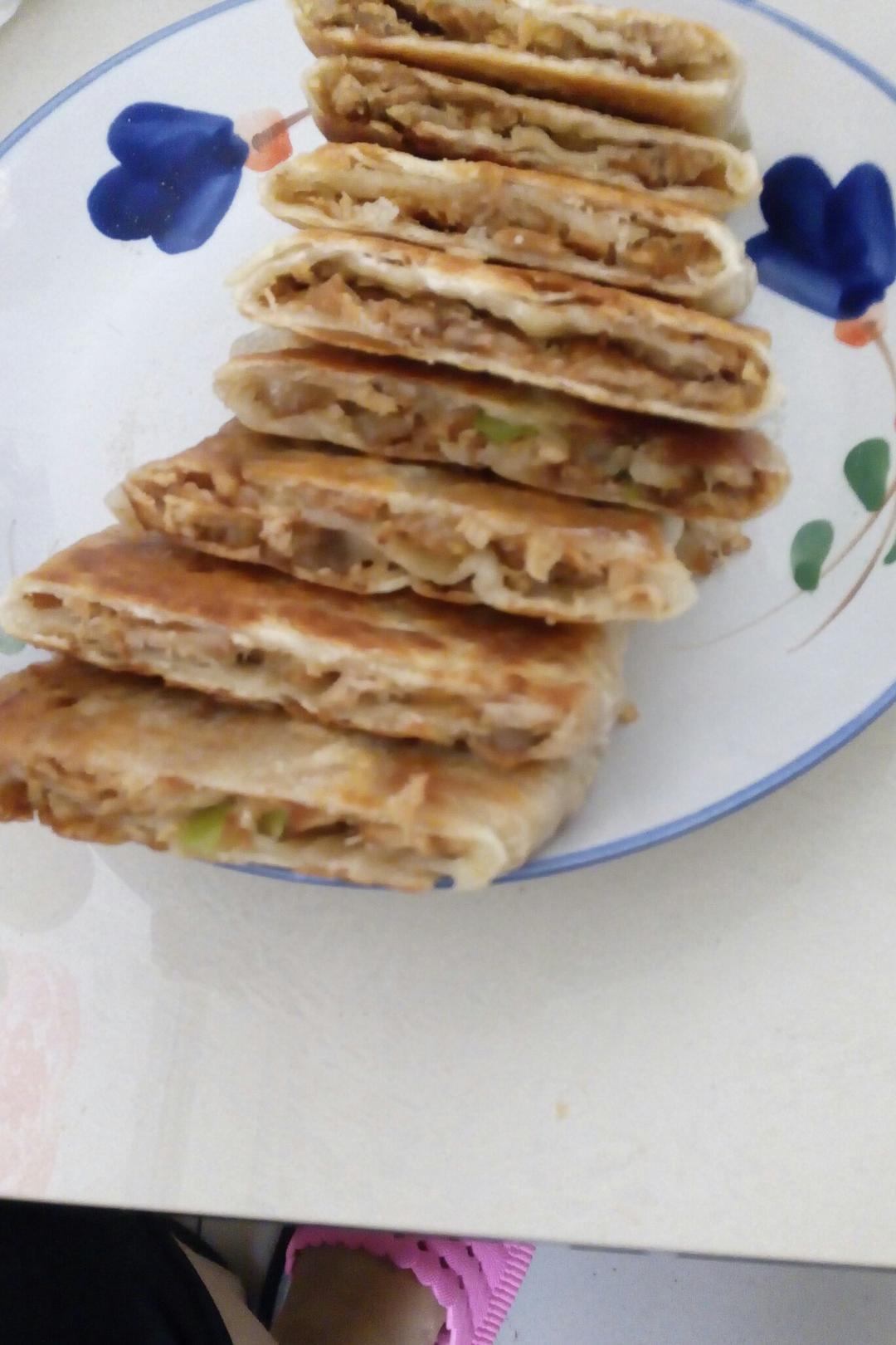 馅是昨天剩下的一些,,不说味道哈,,,饼皮就好吃!!!下次一定再做一次。。