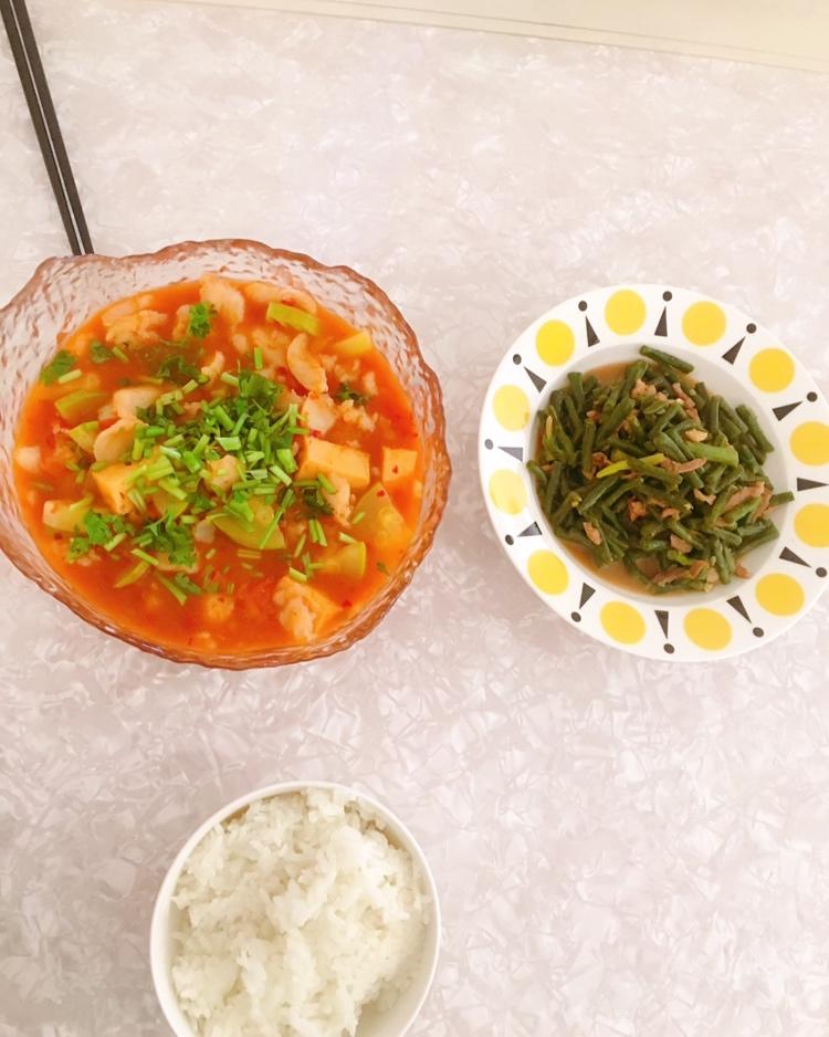 来开饭啦~~番茄+泡菜+龙利鱼+豆腐汤啦~ #晚餐•2016年4月21日#