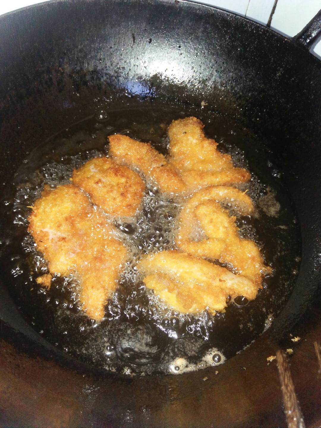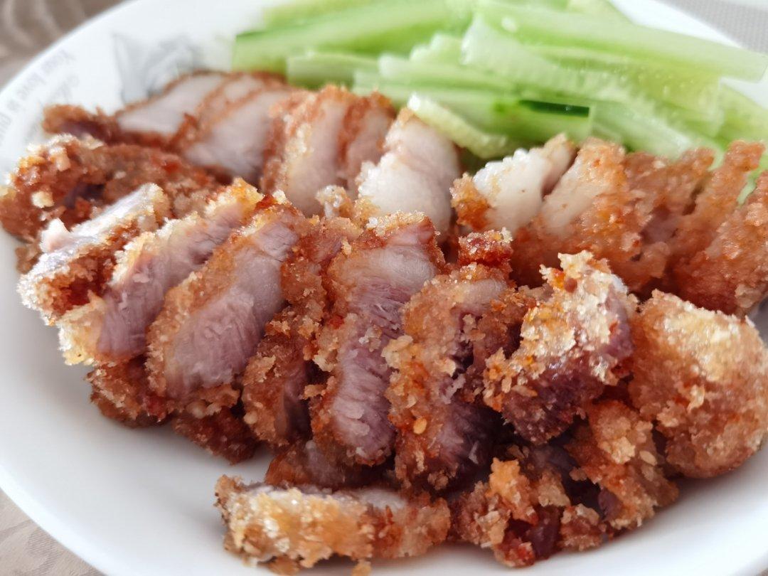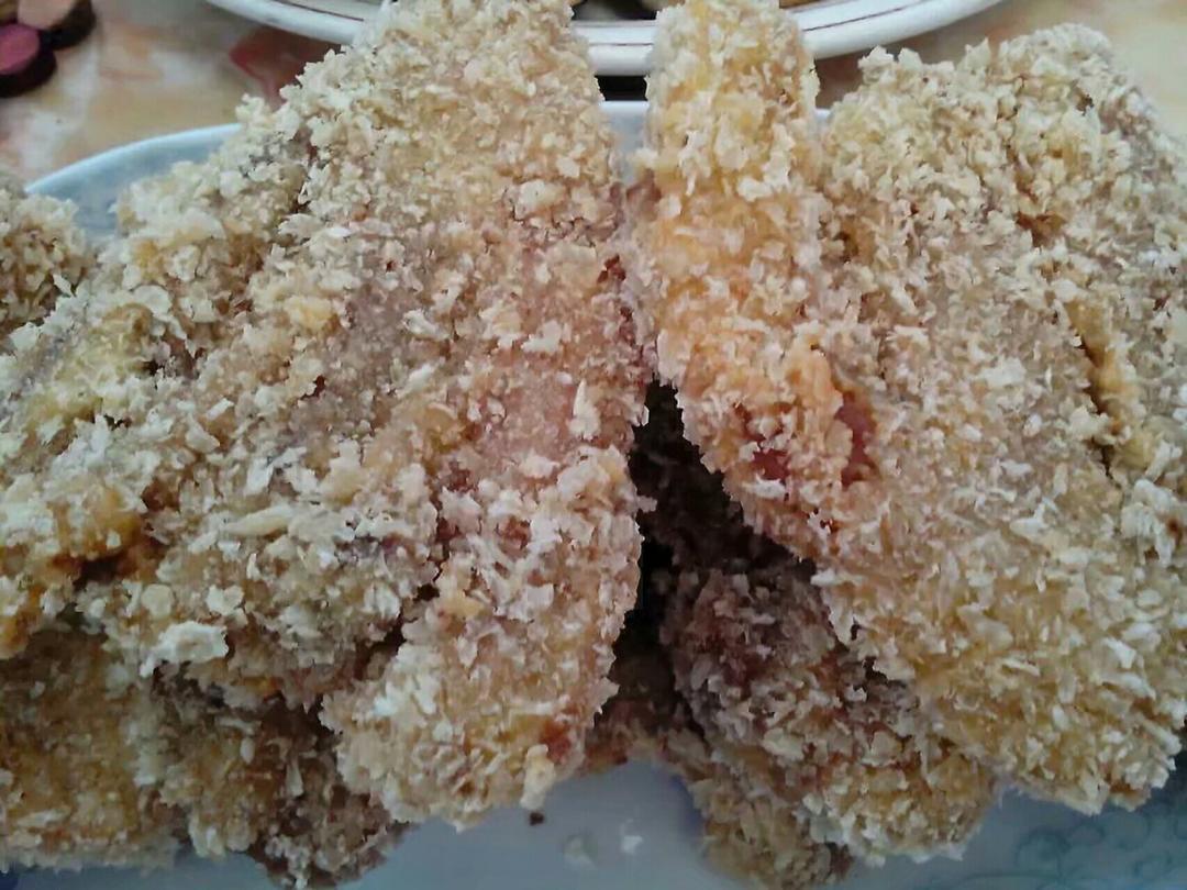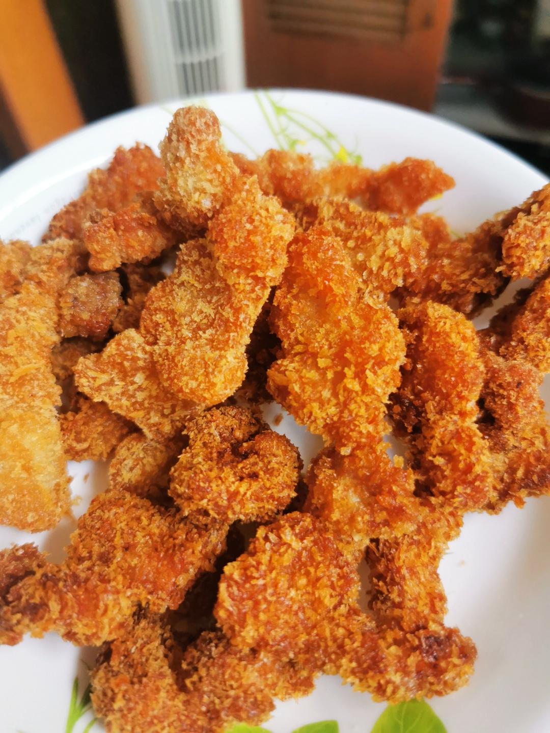 第一次做爽口肉,很成功。就是面包糠裹得不够,会掉。