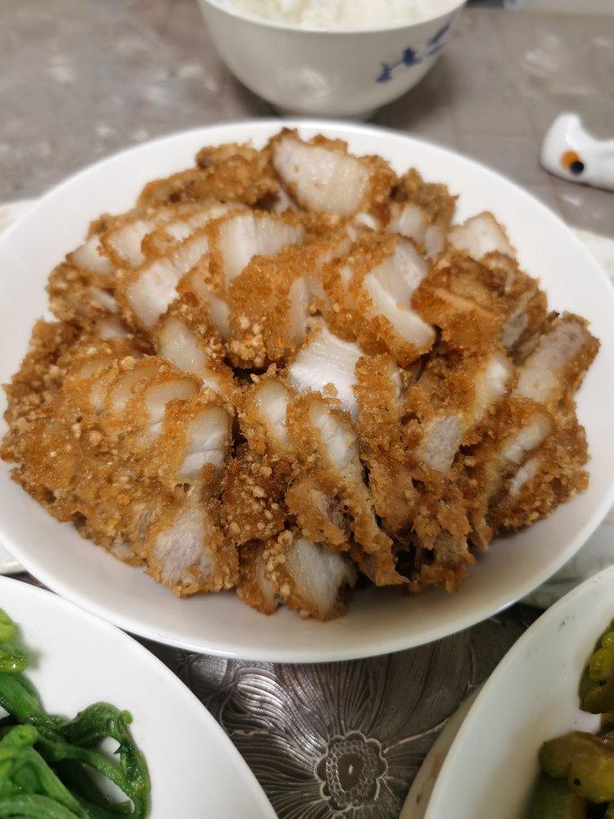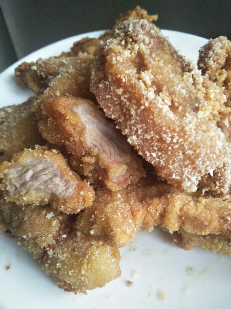 我这个是不是火候过了😄?但是味道真不错!腌制的时候我加了点十三香和腐乳,真的看个人口味。一直来都喜欢吃爽口肉,对油炸过程很恐惧,今天才动手。我的面包糠是自己做的,仅有全麦面包片了,不知道这卖相是不是和全麦有关系?不管了,厨艺不精,全麦不背锅!好吃才是硬道理,不追求完美!