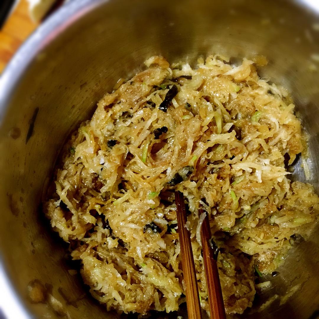 白萝卜素馅饺子 白萝卜切丝放盐,十三香,腌制出水。锅内放油,豆瓣酱,放入白萝卜丝炒一下用水煮5分钟,差不多白萝卜丝熟透盛出!黄瓜丁和下榨菜丁一起炒,炒香后,所有食材混合!就可以包了!炒菜出来调料可以放蘸料,加点醋就可以了,老公吃了24个 晗不点