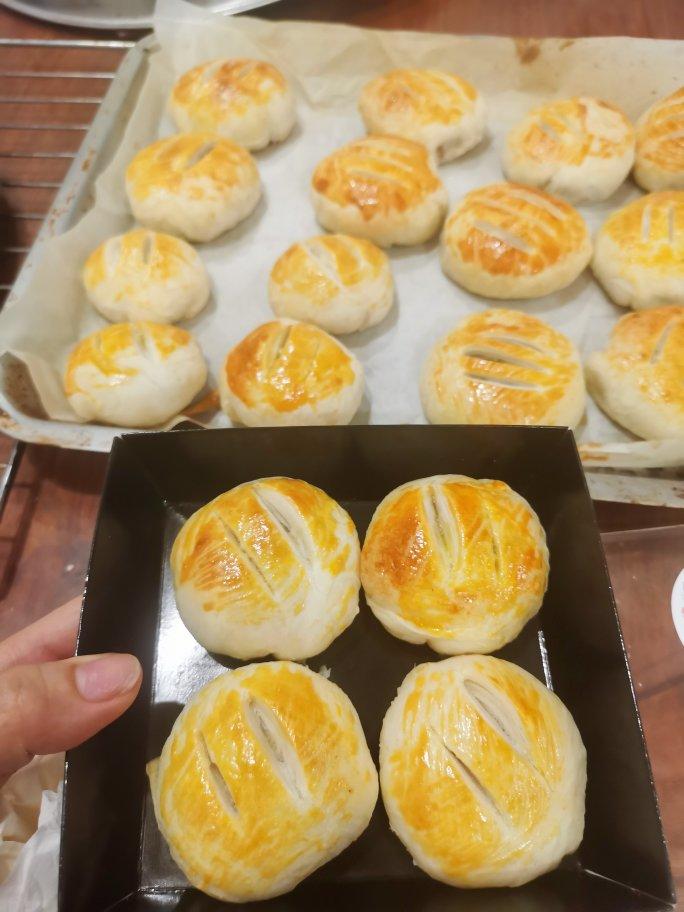 用的老婆饼的馅儿,完全不想吃蛋黄酥了……这个馅儿太好吃了,减糖,每块6克代糖,甜味刚好,这次用的含量百分99的黄油,下次要减20%,全家爱