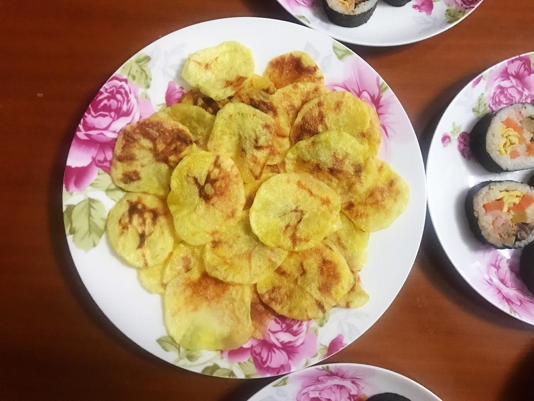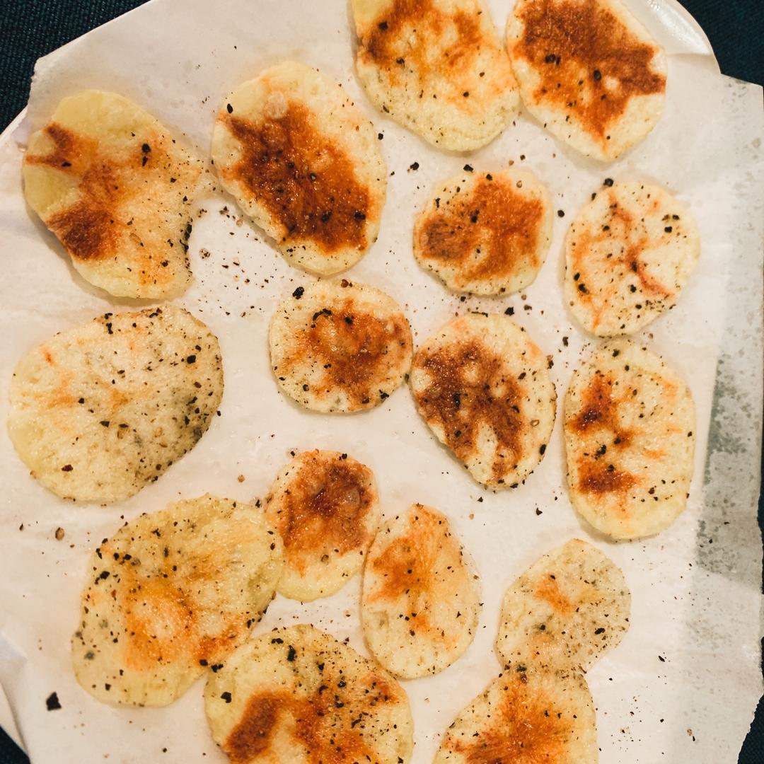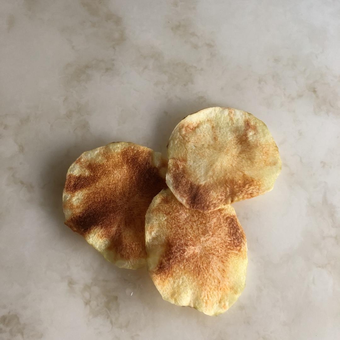 太好吃了,脆香脆香的。土豆片用水果刀切真是太好切了,这个办法很实用阿。家里没有冰块,直接把一碗自来水放到保鲜里半小时取用。土豆片根据厚薄不同需要的时间不一样,多试几次就有数了。总之很好吃呀