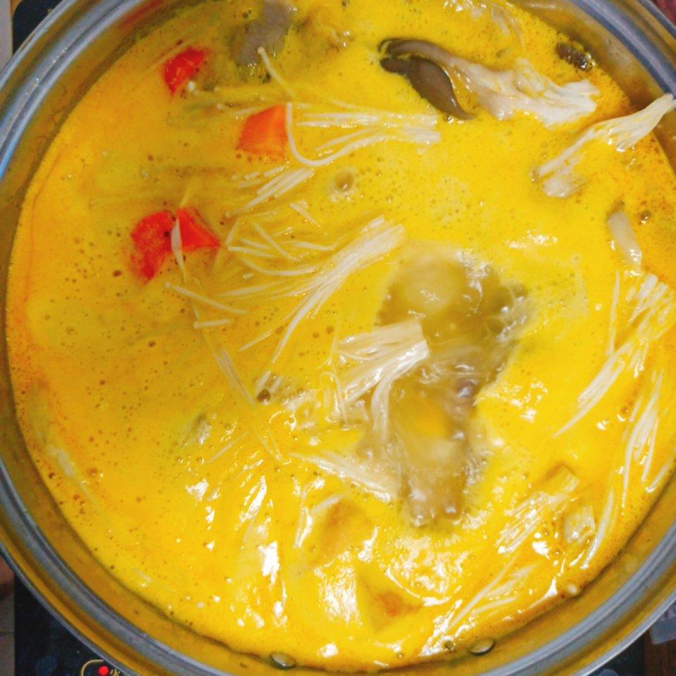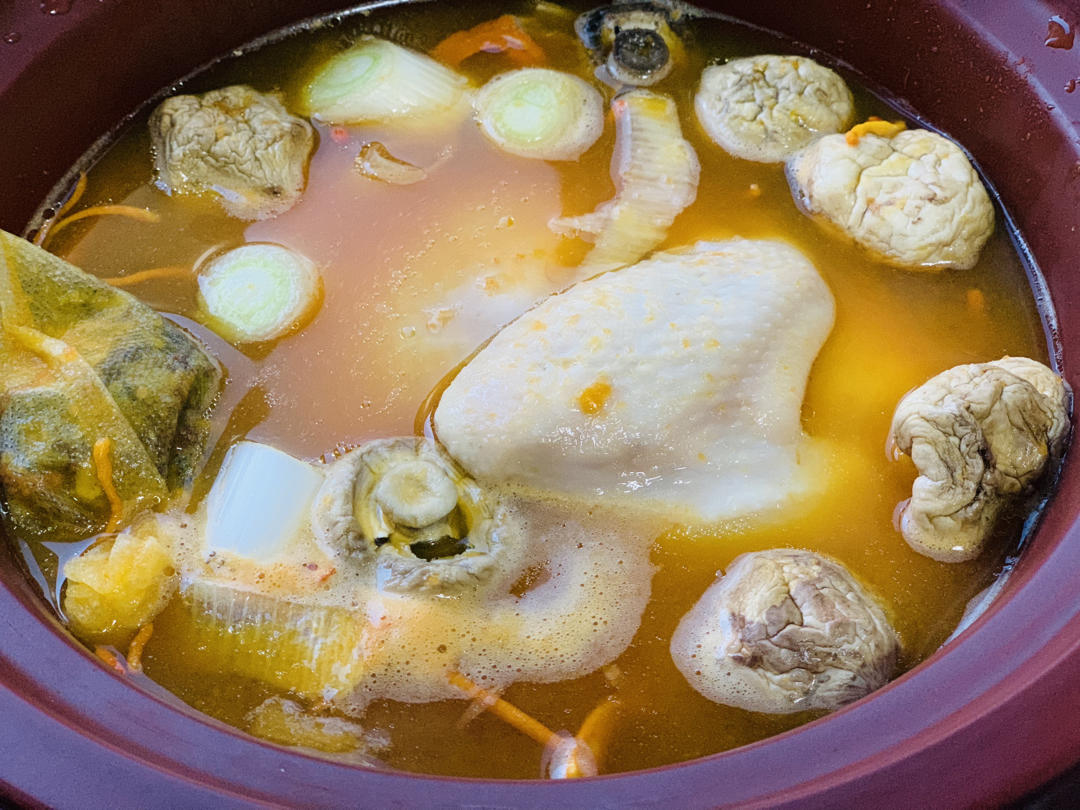 4、煮的时候可以放一些松茸(把伞帽去掉,否则汤色发黑)