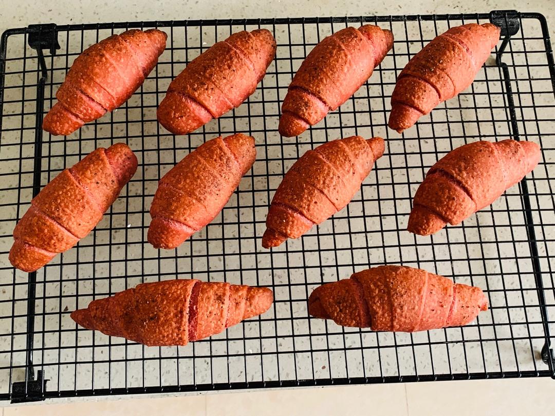 做了甜菜的,面团太湿了…室温二发…太心急,二发不充足…