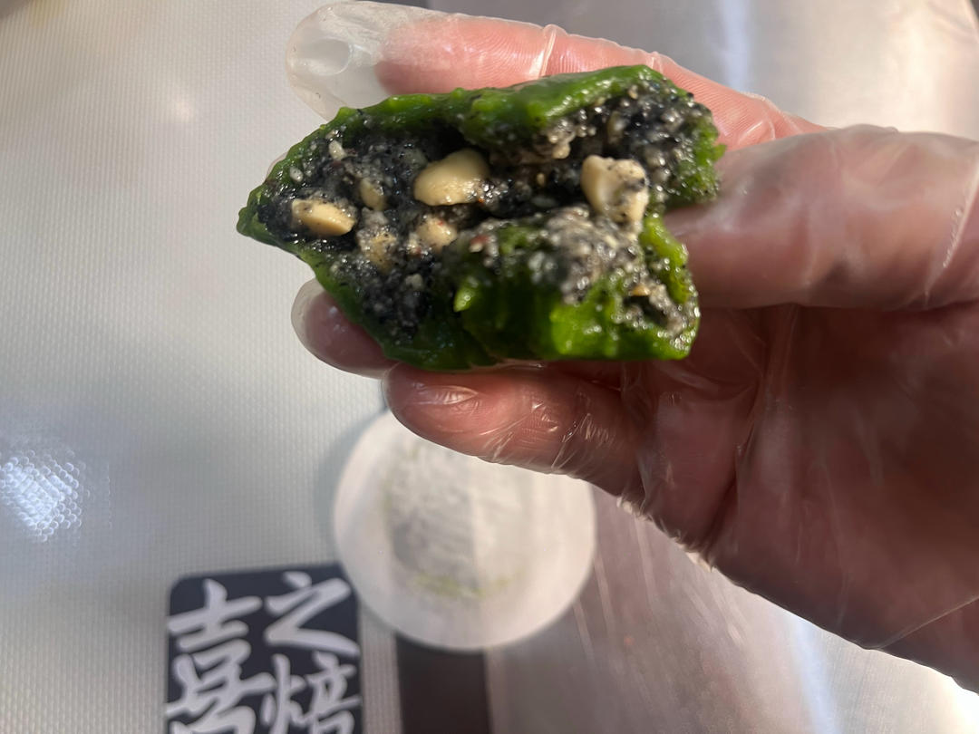 好吃的,用了四倍的量但是糖只用了200就够了,皮馅比例2:1比较适合我,花生和芝麻可以打得和楼主的一样碎,碎一点更好吃,皮也是用澄粉那个配方。42g皮 22g馅料 滚水蒸7分钟
