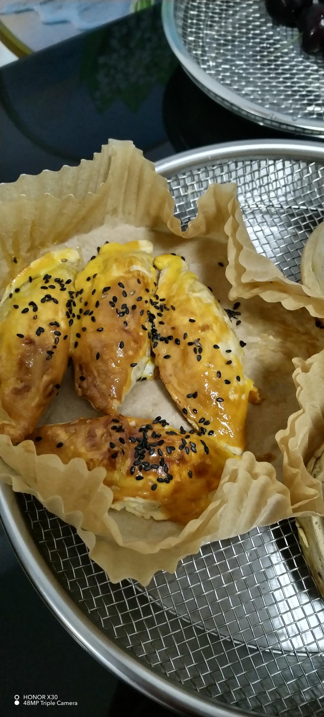 10分钟200度,没有鸡蛋就没涂,爆开了😂也不错
