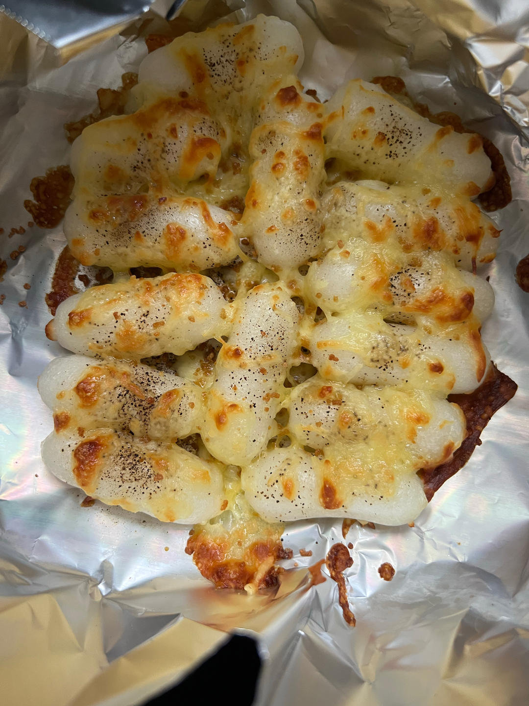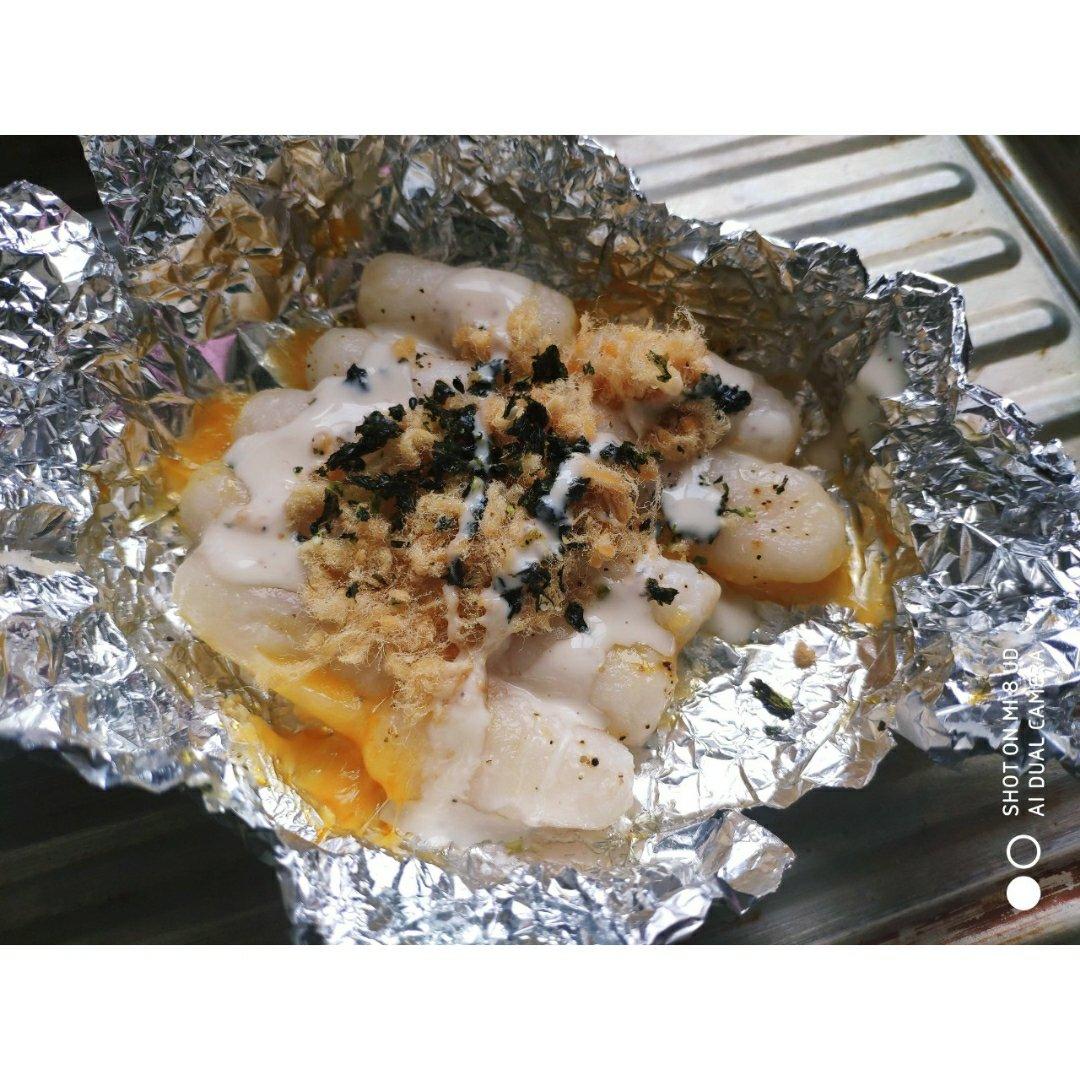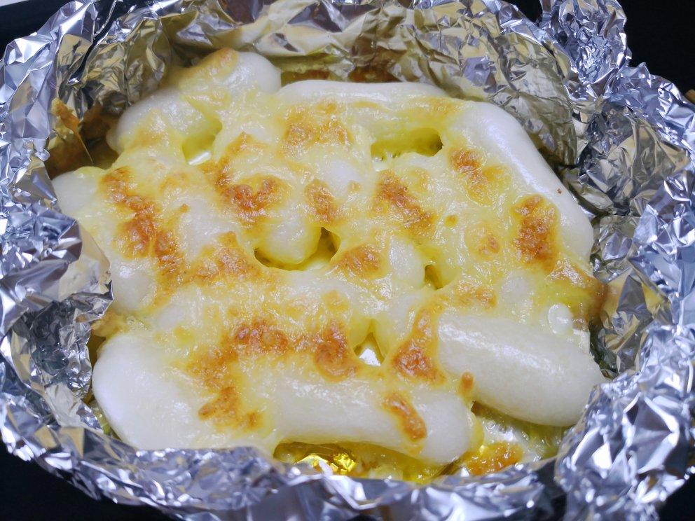 怕芝士烤过了就没烤到15分钟,味道很好,黑胡椒和芝士也很搭,水煮年糕吃腻了可以试试!