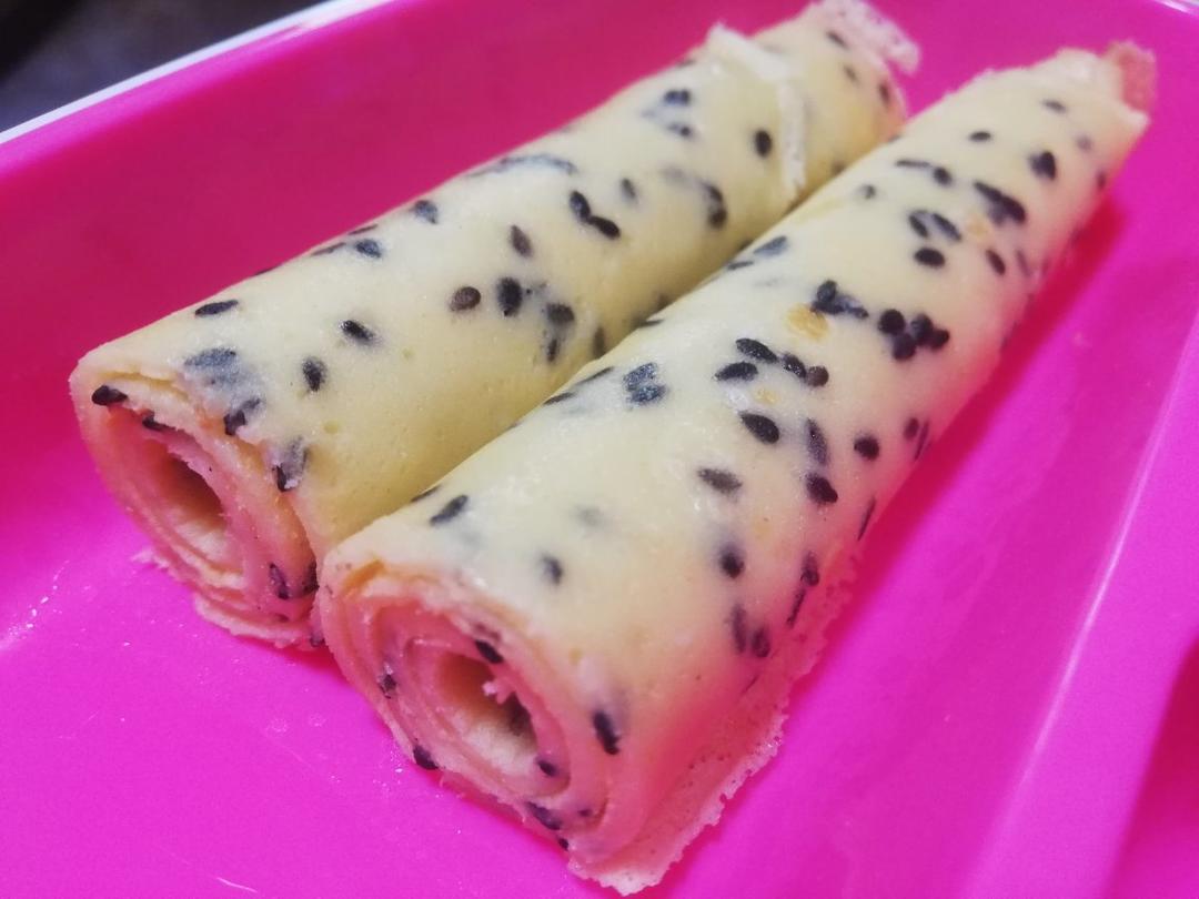 手残厨房小白,哈哈哈摊的太厚了卷不起来就切开了,不过还是很好吃✌🏻