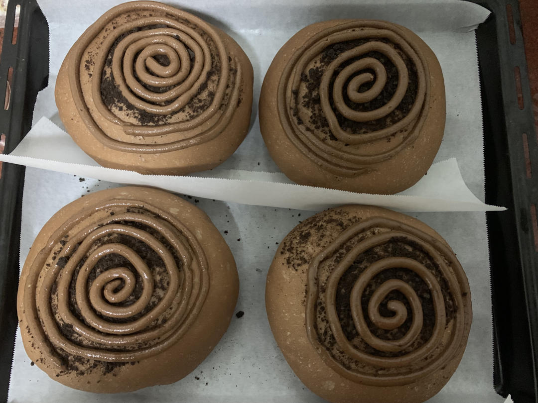 巧克力面包很好吃!没有用乳酪馅,试着直接把生巧包进去了!用了250克,做了7个小的!刚刚好!