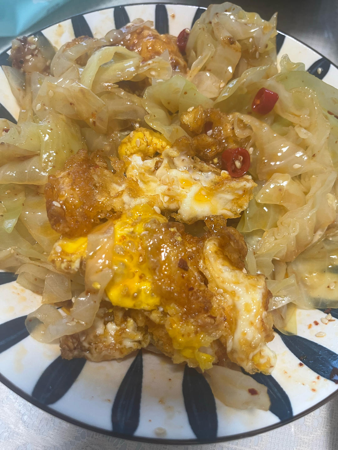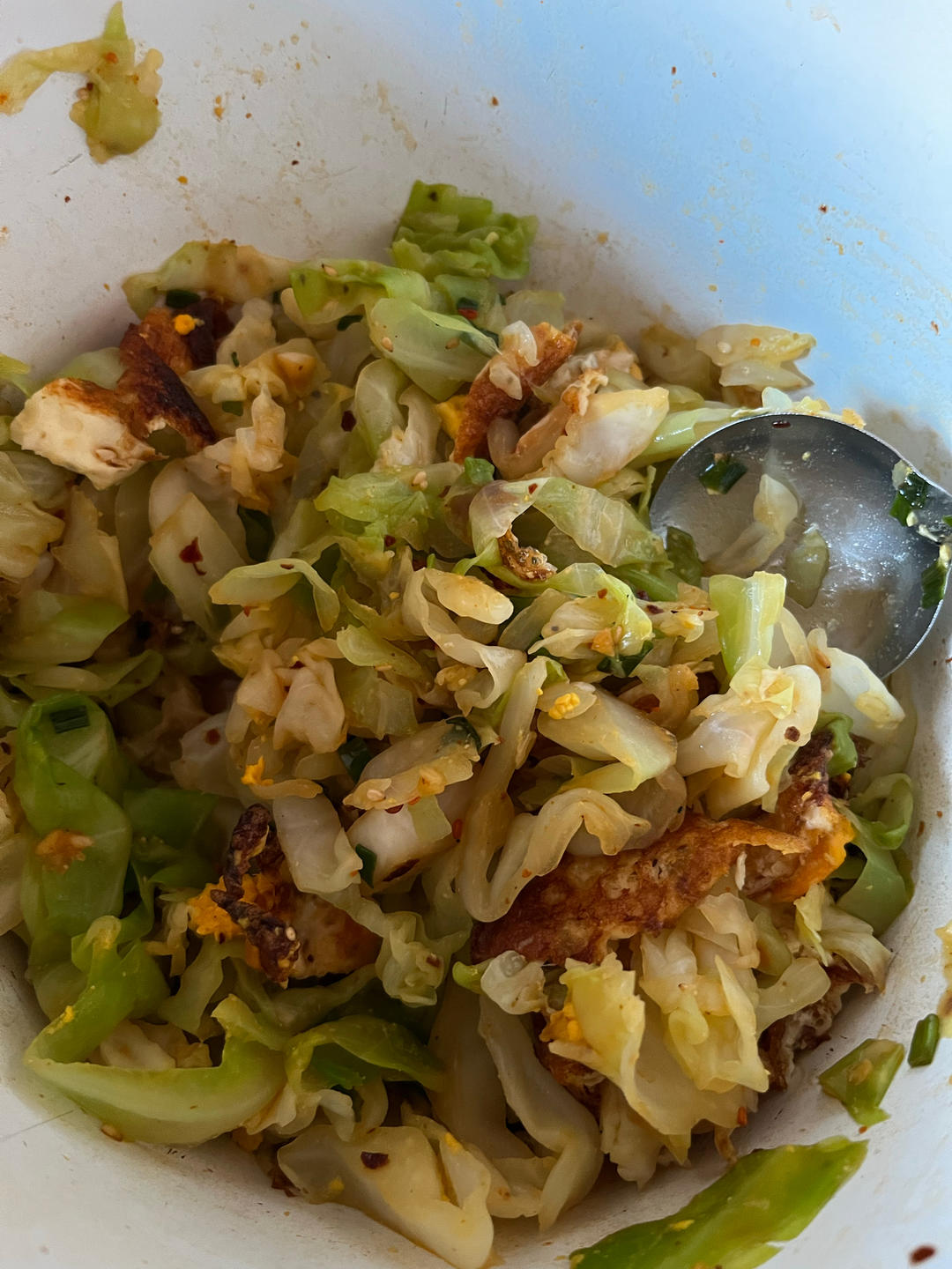 没有小米椒,用了干辣椒代替做完了之后鸡蛋很香,但是包菜吃起来有点苦,发涩不知道什么原因,可能买的包菜不太好,还是包菜坏了?#午餐•2025年5月11日#