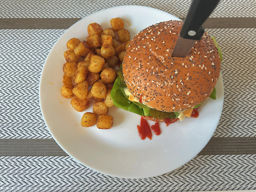 有这些配方谁还去汉堡店 9款自制汉堡! #午餐•2025年7月20日# 今天做了牛肉的刚好把沙拉酱用完啦下次买蛋黄沙拉酱吃૮₍ˊᗜˋ₎ა汉堡皮第二个煎焦了😅然后生菜特别容易塌方 肉饼会不会散取决于翻面的时候有没有折到它🥺 tl0u