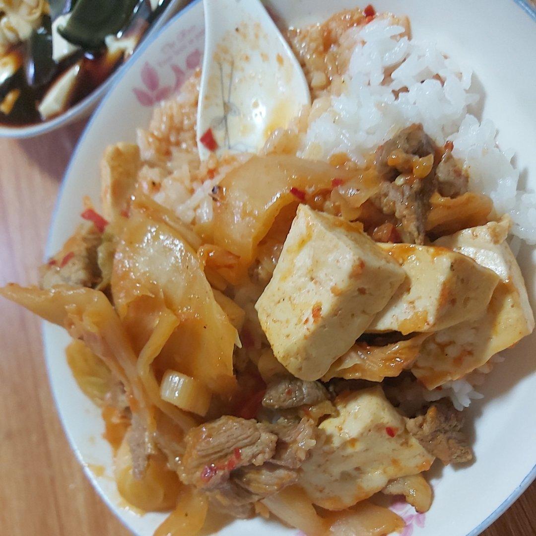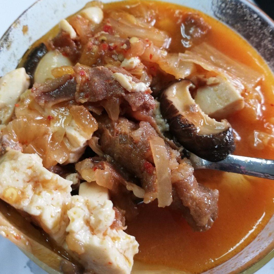 汤里加了火腿肠,豆芽,豆腐和平菇,味道不错,快手又美味