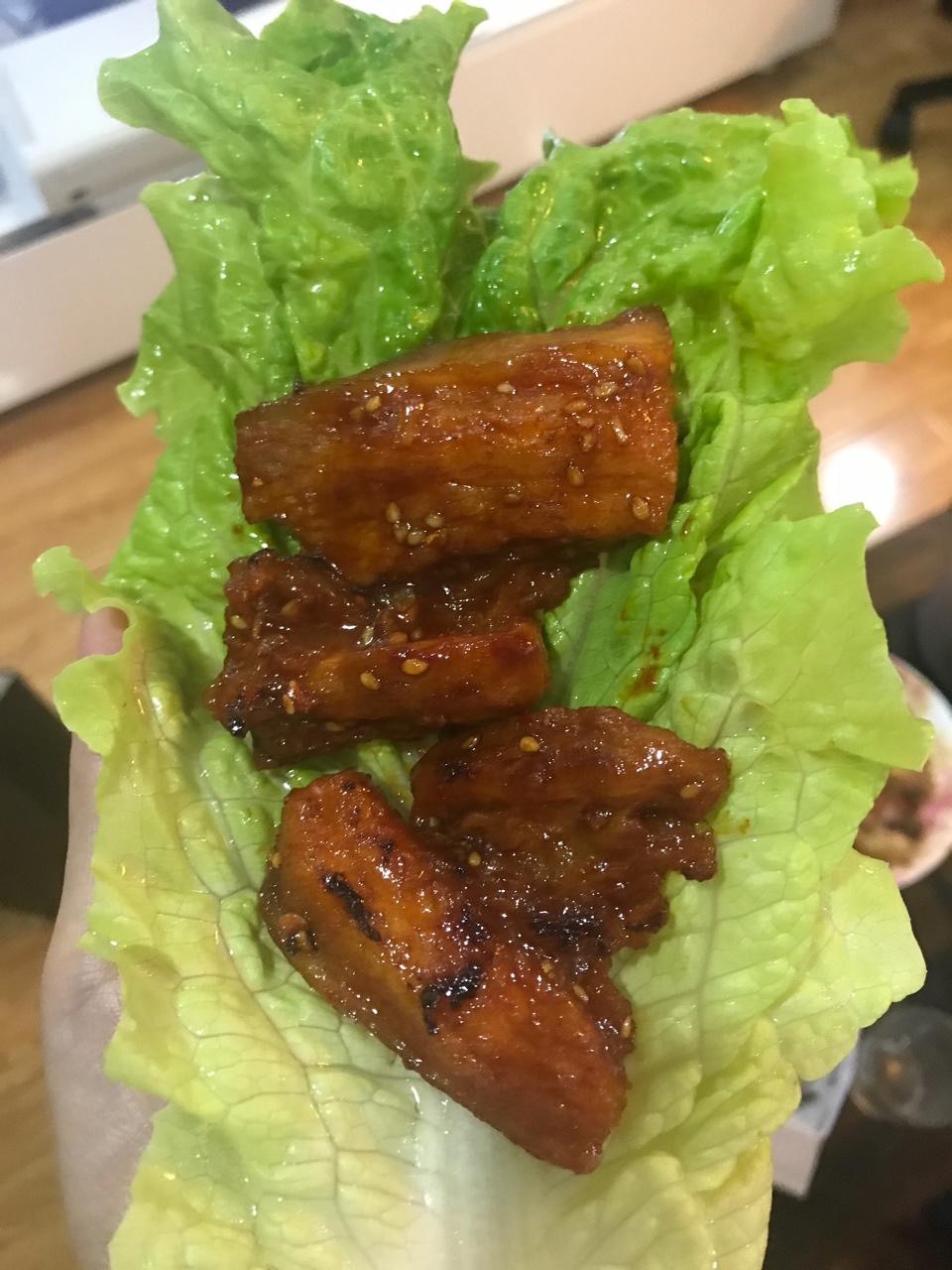 拍的有点丑 但竟然没有猪腥味了我太开心了吧 烤的正好软嫩 还挺好吃的!