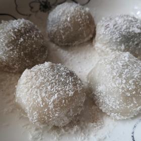 皮料:糯米粉100克,生粉50克,白砂糖30克,玉米油5毫升,奶粉3量勺,温水180ml 馅料:白砂糖20克,红豆1把,黑芝麻2把〖手抓的,没称〗,小米1把。 做法1+所有馅料食材用料理机加水50ml打成糊,再用不沾锅小火翻炒收汁 2+奶粉和白糖倒入温水中融化,再到入糯米粉生粉,