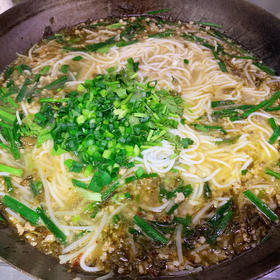 猪肉末放糖、料酒、蚝油、生抽、淀粉腌制备用,绿豆芽掐头去尾,韭菜切成寸段,起锅烧油煸炒猪肉末,中小火多炒一会儿,略炒出猪油后,加入姜末和蒜末,大火炒出香味后,烹入海鲜酱油炒香,加水烧开后放入一个浓汤宝,再煮开后加一点白胡椒粉,然后加酸腌菜多煮一会儿,加盐调味,之后加入绿豆芽、韭菜,随后加入煮好的米线,撒上香菜末和香葱末。另取一个干净小碗,放入盐、细辣椒面、粗辣椒面,烧点儿热油浇上去,配米线吃绝了,还有米线里面加韭菜也是神了,超级好吃!!
