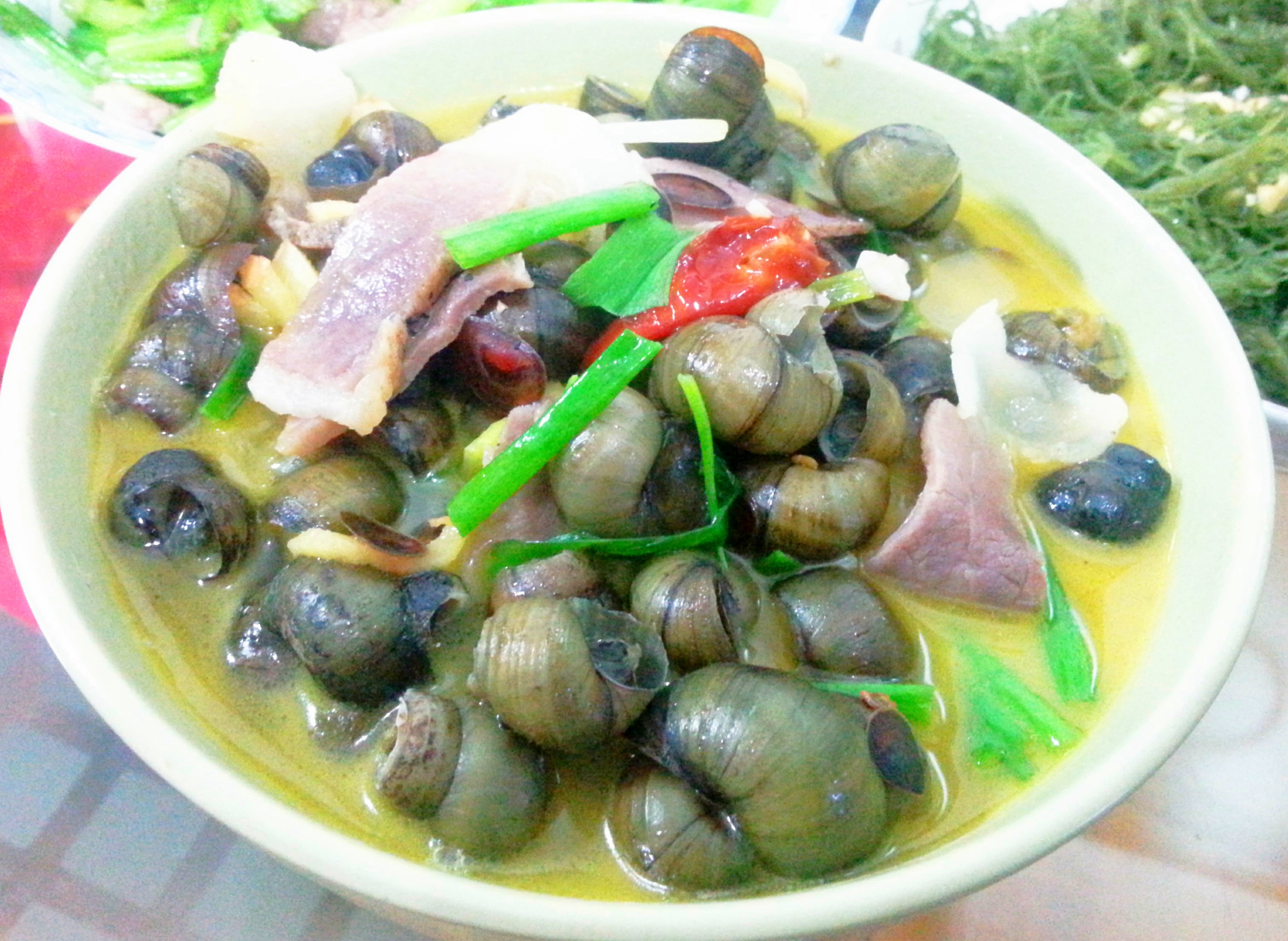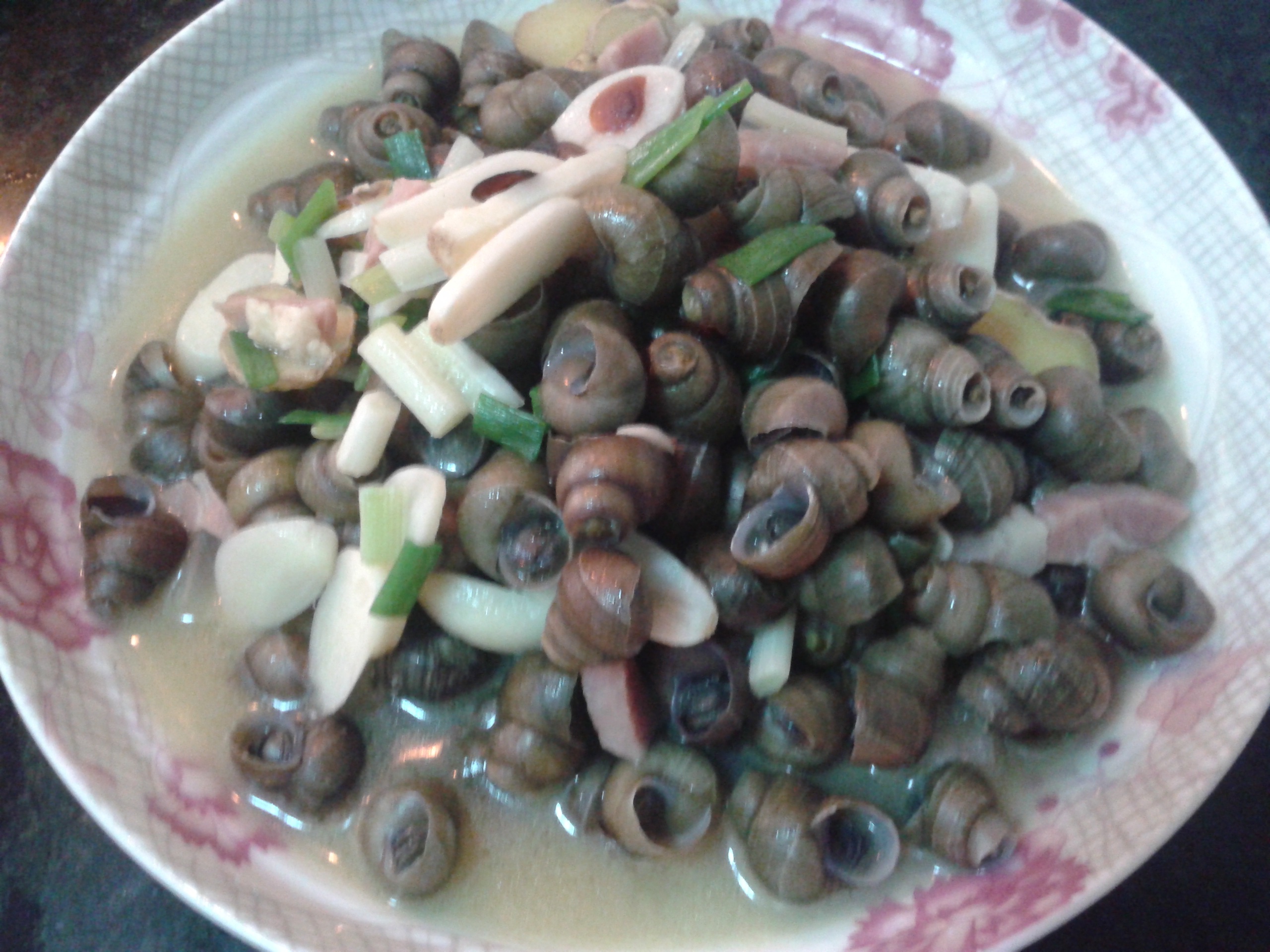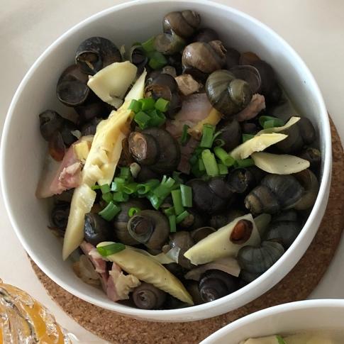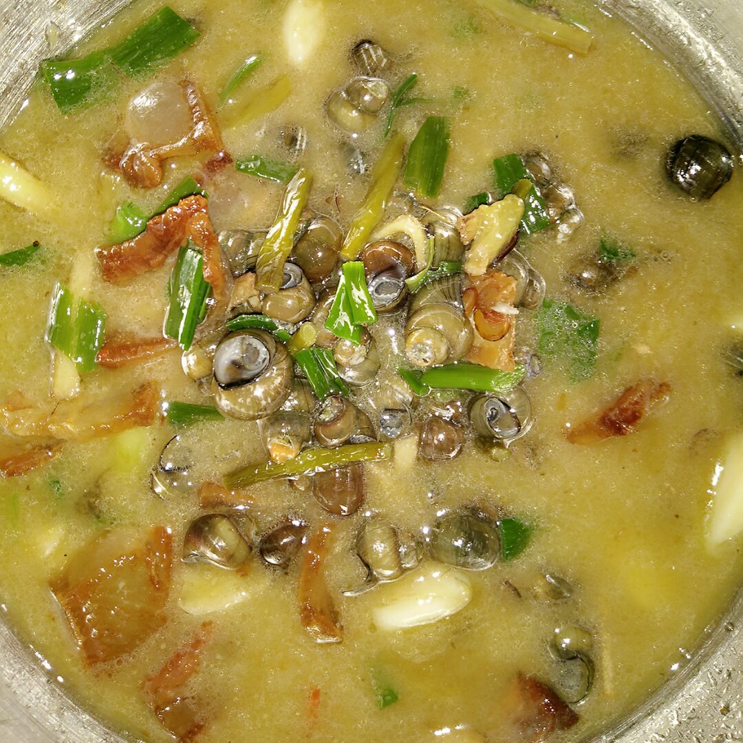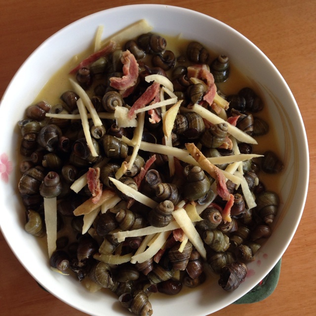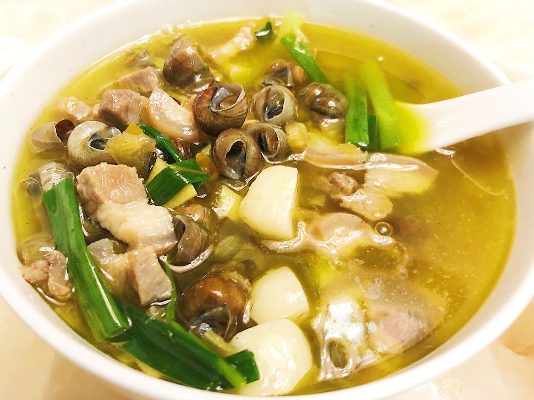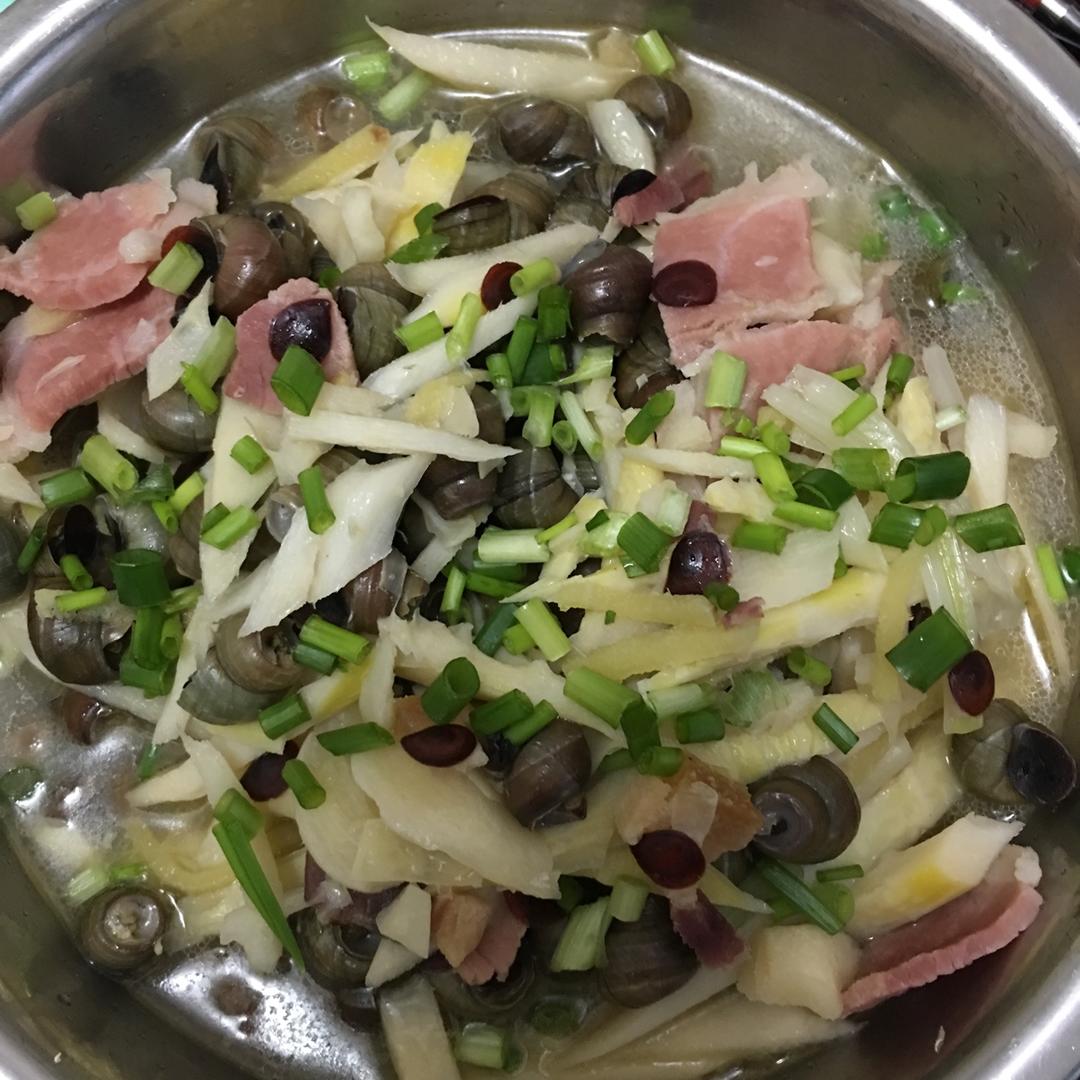 我用了火腿,泡椒,青红辣椒一起做的 清明前后的螺蛳最肥,螺蛳沾一下汤,然后把肉吸出来,肉肥汤美,还可以拌饭吃