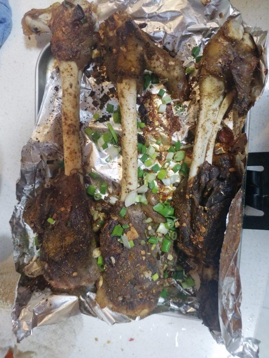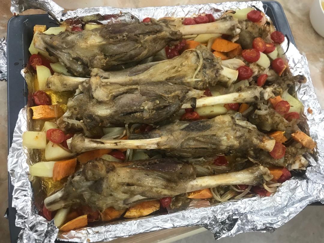 第一次烤羊腿成功,,告诉你们一个绝密的。用一支针管儿把调料水注入到羊肉里。哈哈,这样不蘸调料味道都绝美了。上层烤羊腿,下层烤蔬菜。烤羊腿留下的汁水进入到蔬菜当中。要说蔬菜比羊腿还好吃,你们信吗?👍👍👍