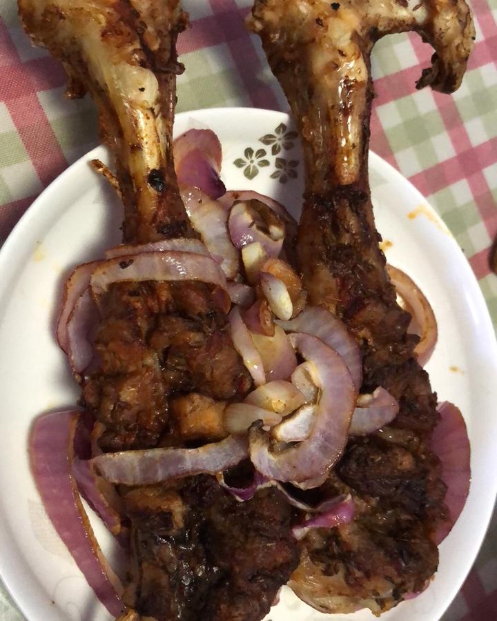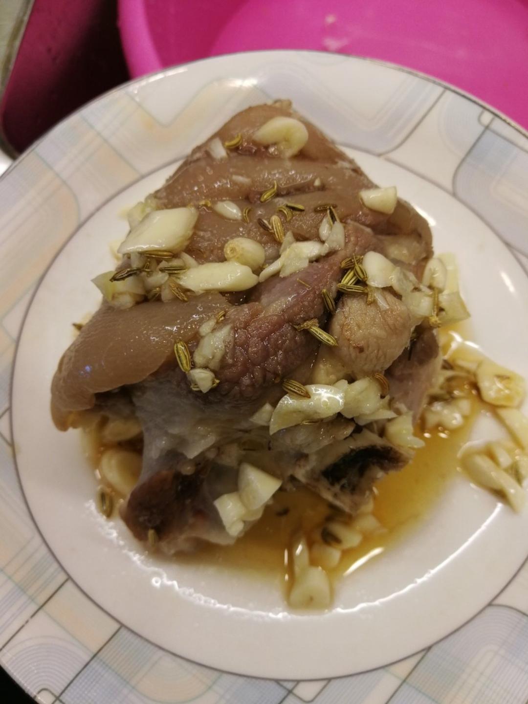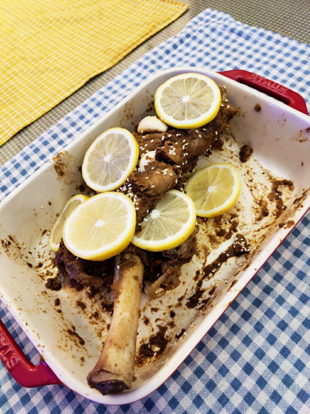 家里实在太多羊腿…  又做了一次,这次酱料中还加了洋葱末,味道更好了,配菜有土豆+地瓜+西红柿+洋葱,满满的吸收了下面汤汁的味道~羊腿还试了沾蜂蜜柠檬酱,简直另外一番风味啊~另外再做了一个孜然和盐拌在一起的料,喜欢吃辣的可以加辣椒粉。瞬间空盘,大大的满足比心~