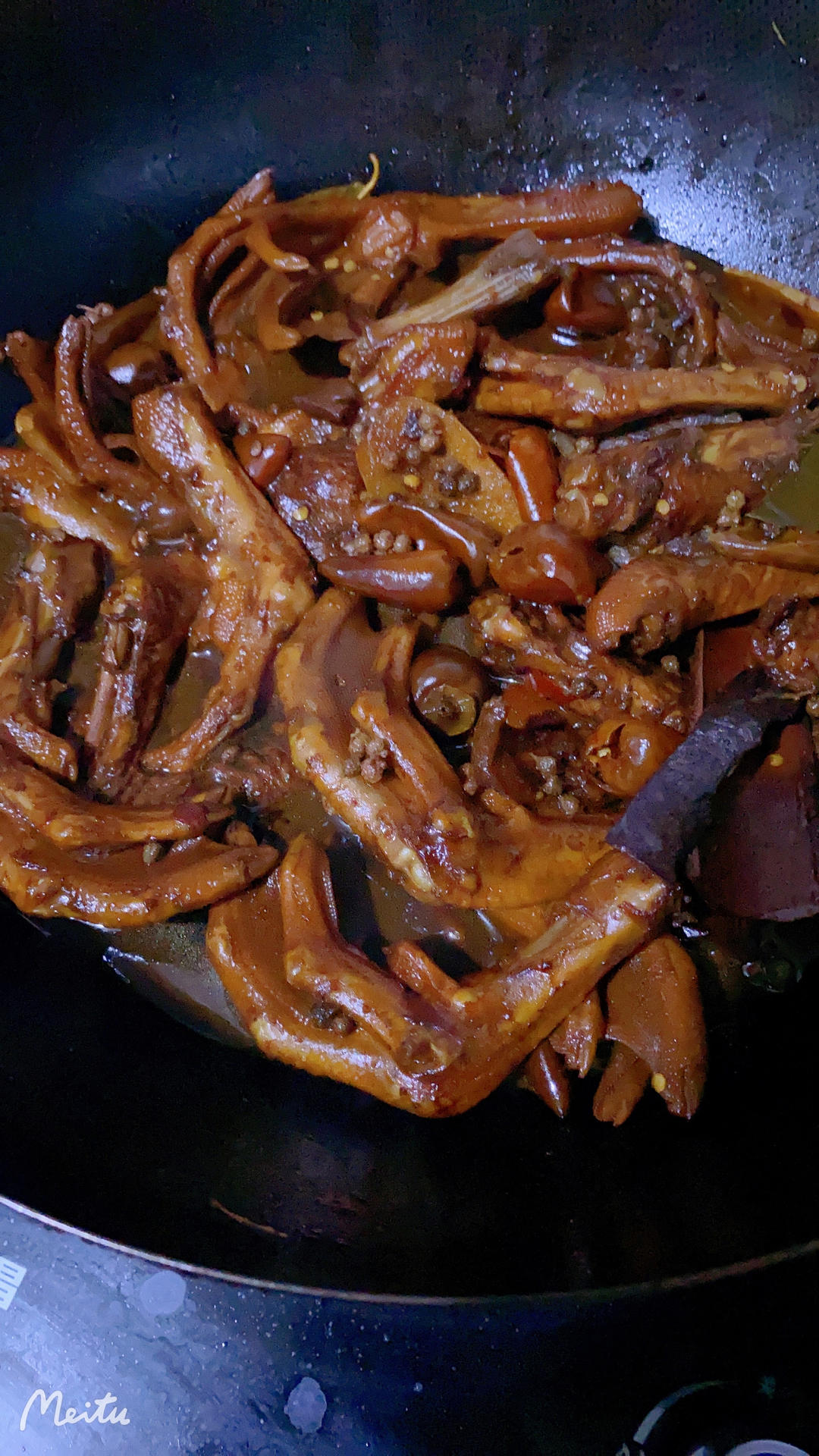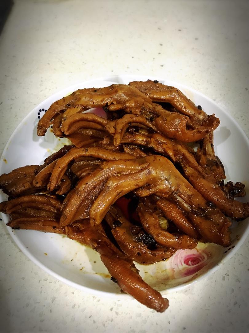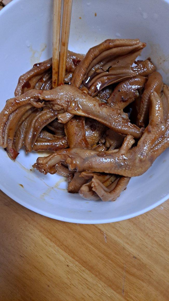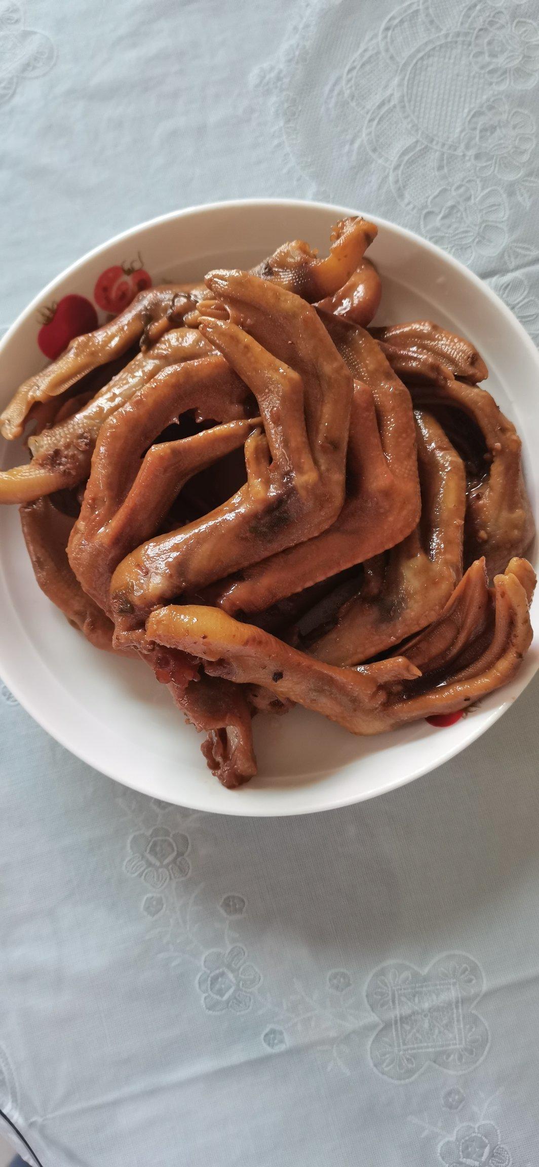 第一次尝试做香辣鸭掌,味道不错的,就是汤汁收干了有点粘手,还算比较成功😄😄