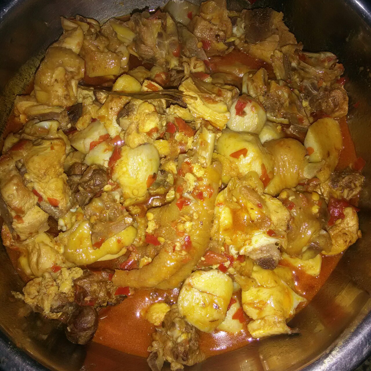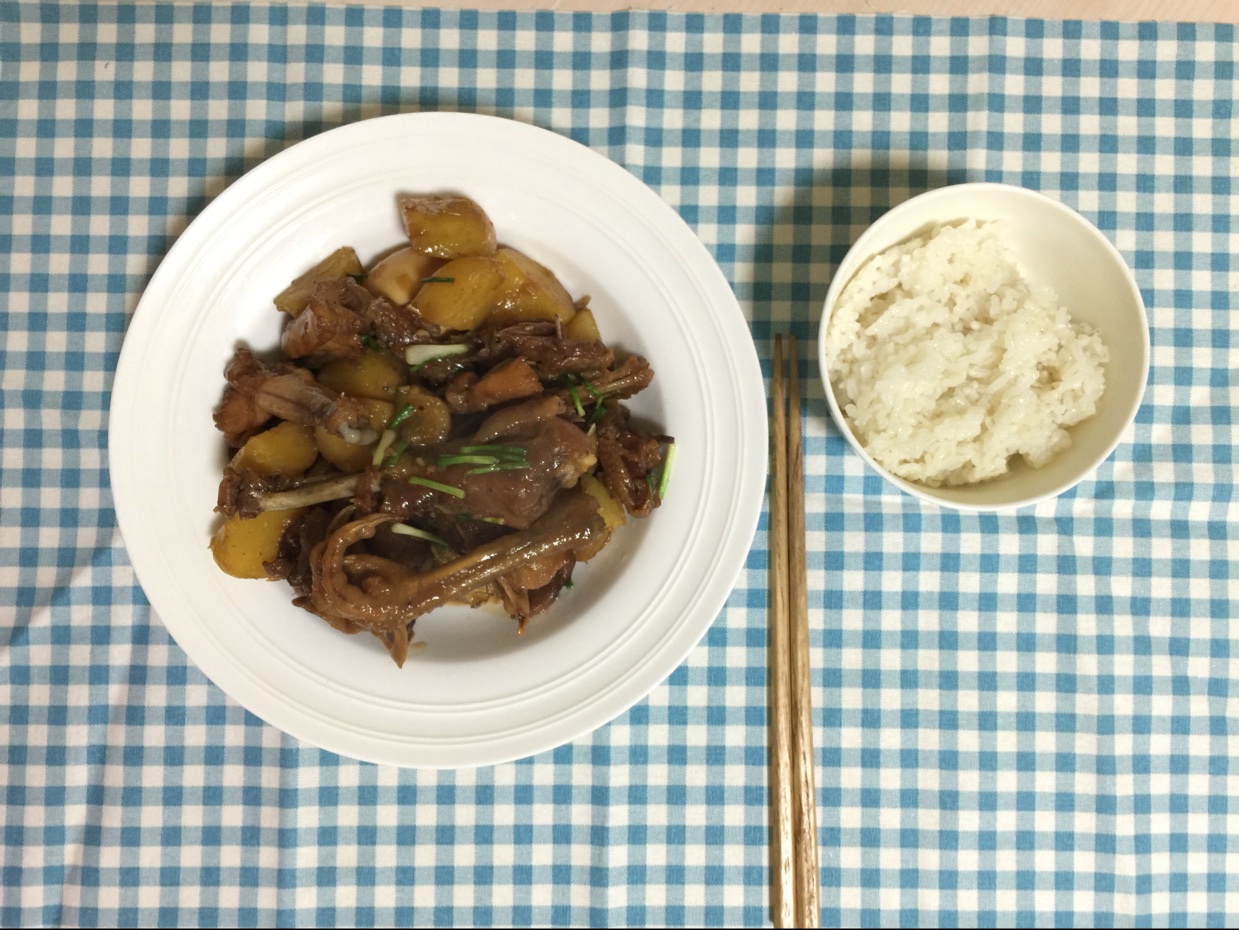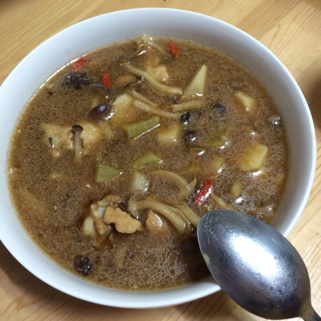 加了点八角,花椒,辣椒,再一包桥头烧鸡公,魔芋打底,味道不错!