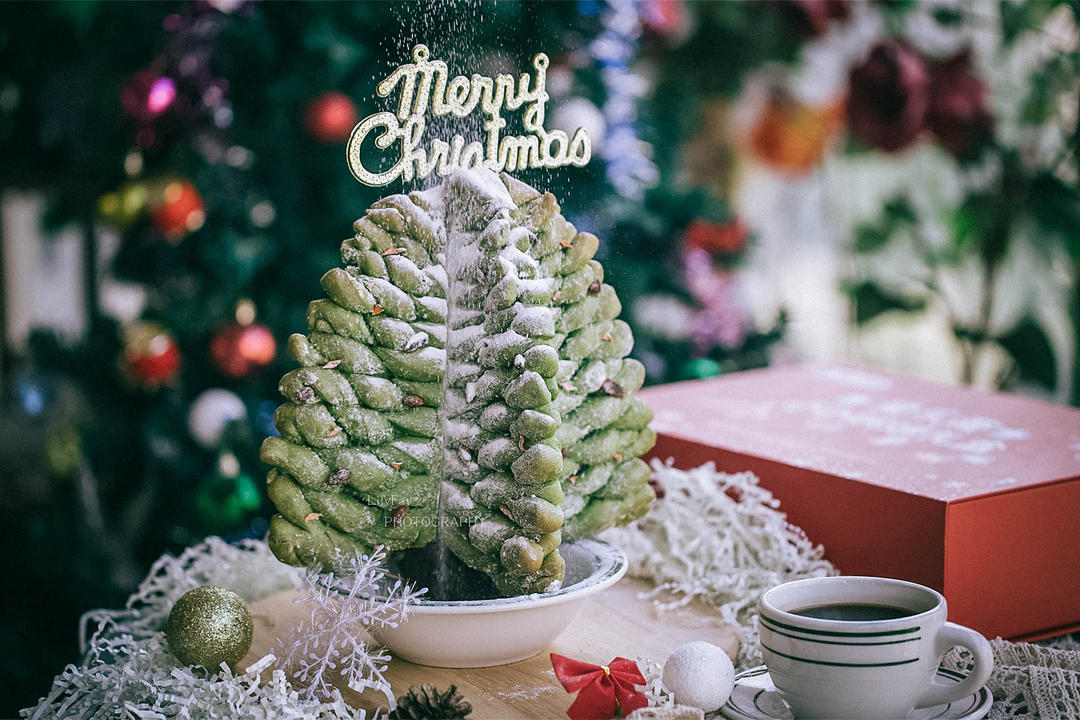 抹茶红豆圣诞树面包