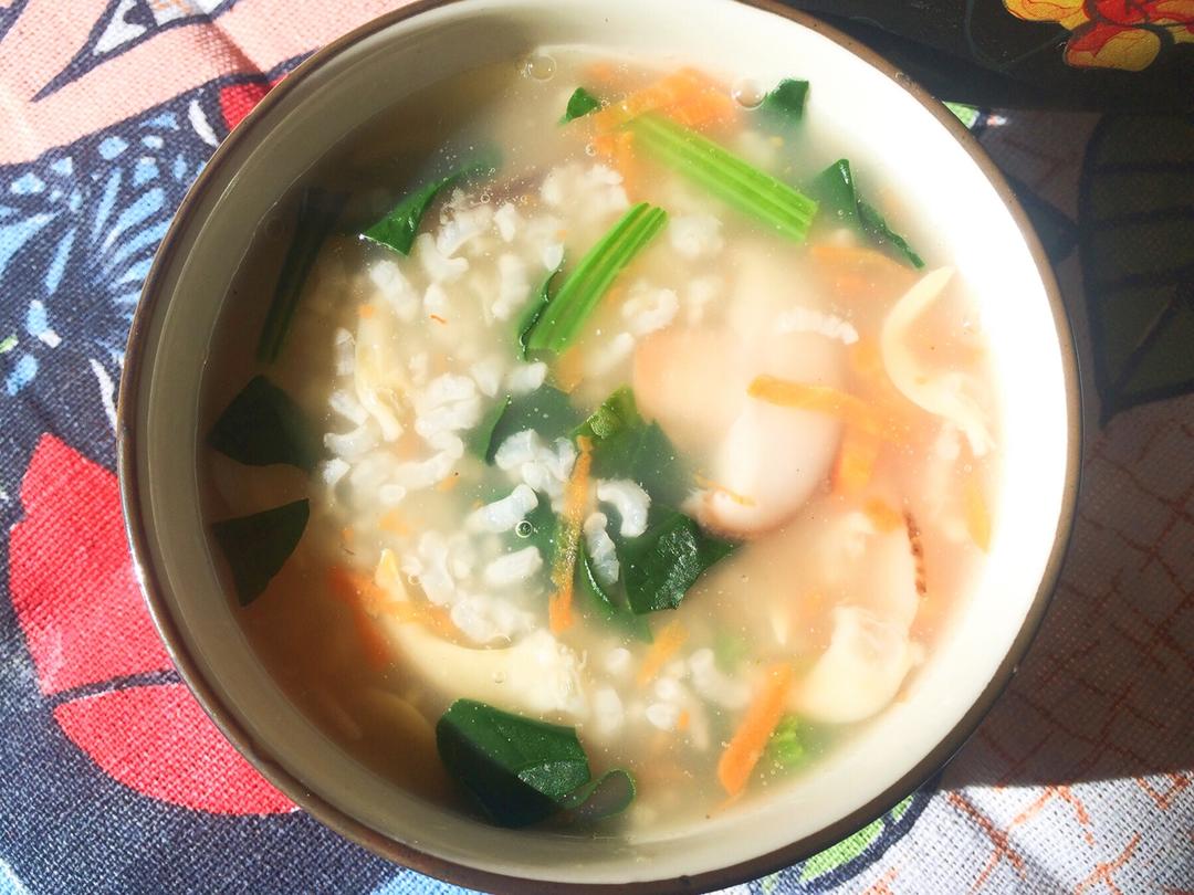 胡萝卜香菇菠菜贝尖粥(蔬菜海鲜咸粥)
