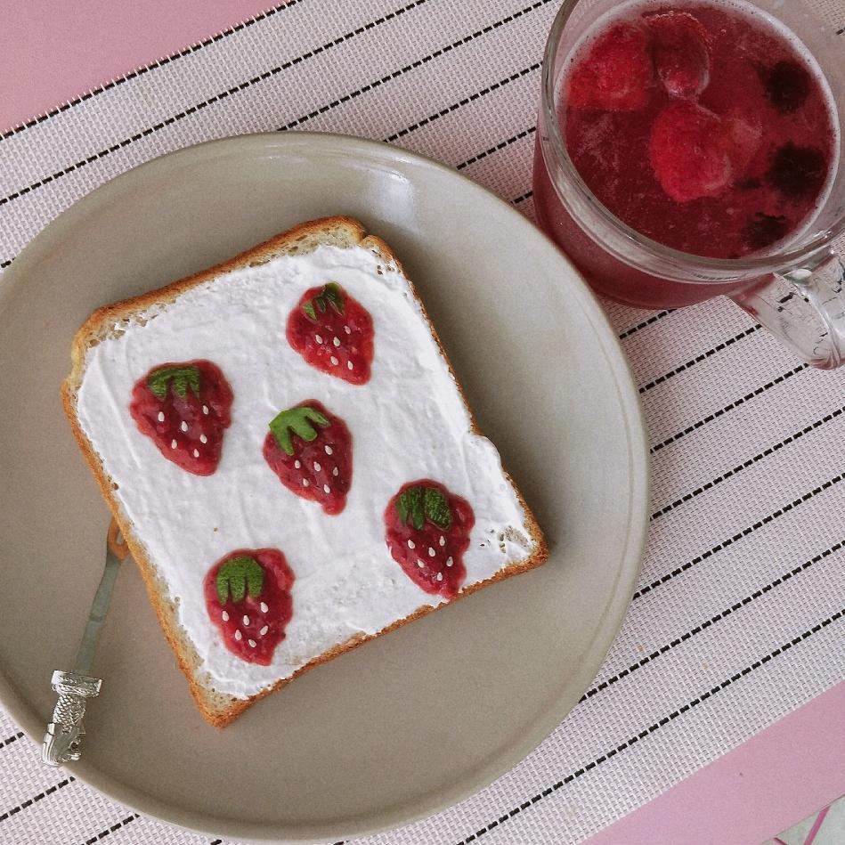 颜值爆表早餐 草莓果酱吐司