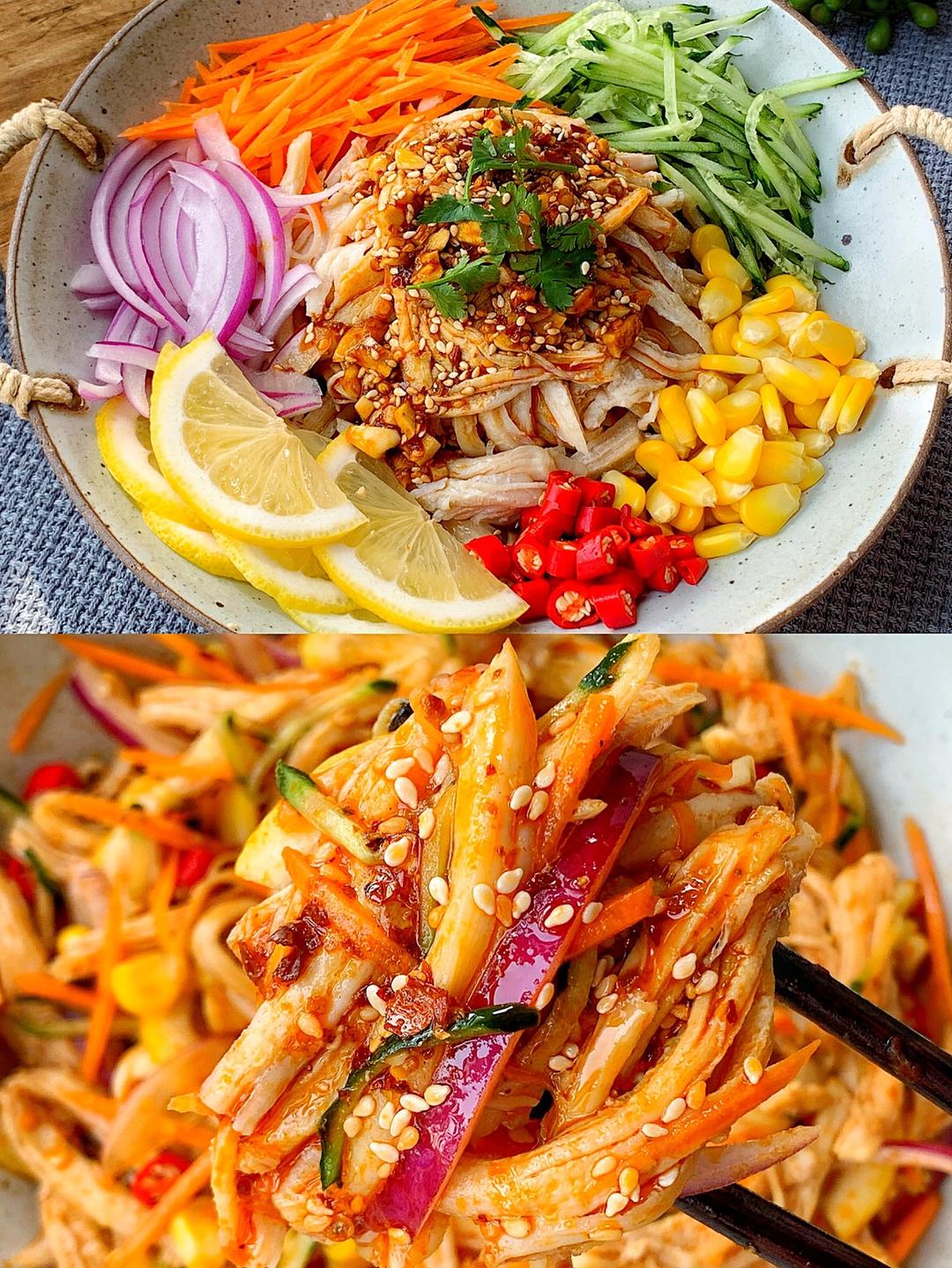 巨好吃零负担的减脂餐㊙️麻辣柠檬手撕鸡丝🔥